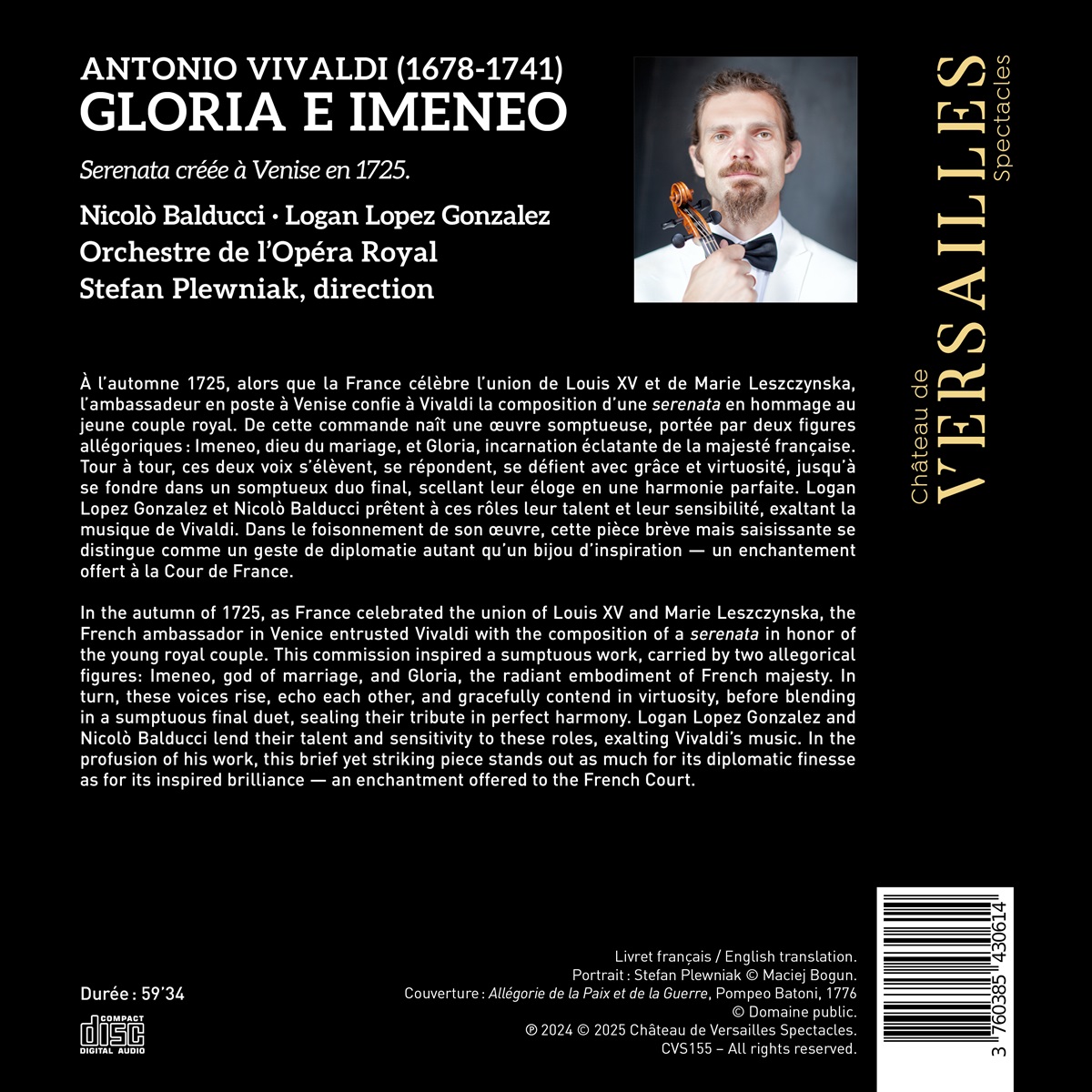 Aus diesem Anlass entstand ein prachtvolles Werk, getragen von zwei allegorischen Figuren: Imeneo, dem Gott der Ehe, und Gloria, der strahlenden Verkörperung französischer Erhabenheit. Abwechselnd erheben die beide ihre Stimmen, antworten einander, wetteifern anmutig in Virtuosität – und vereinen sich schließlich in einem glanzvollen Schlussduett, das ihre Huldigung in vollkommener Harmonie besiegelt. Logan Lopez Gonzalez und Nicolò Balducci verleihen diesen Rollen mit Eleganz und Feinsinn Ausdruck und lassen Vivaldis Musik erstrahlen. In der Fülle seines Schaffens ragt dieses kurze, aber eindrucksvolle Werk sowohl durch diplomatische Finesse als auch durch inspirierte Brillanz heraus – ein wahrlich brillantes musikalisches Geschenk an den französischen Hof.
