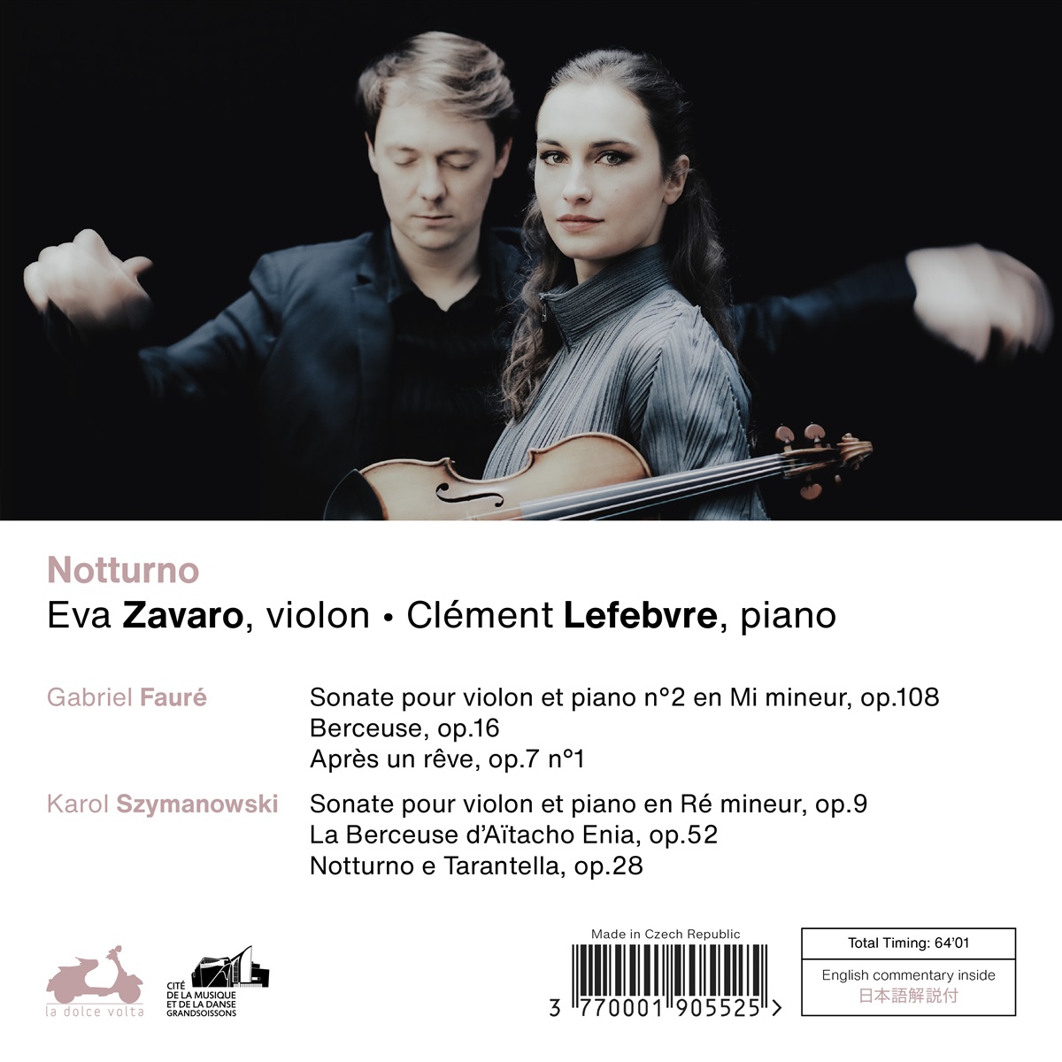 Die Geigerin Eva Zavaro zeigt ihren beiden Heimatländern Frankreich und Polen ihre tief empfundene Anerkennung mit einem Programm mit Werken von Gabriel Fauré und Karol Szymanowski. Der rote Faden ist die Nacht, eine Inspirationsquelle für beide Komponisten, die in Stücken dargestellt wird, die mal virtuos und ungestüm, mal lyrisch und verträumt unter Evas Bogen entstehen. Begleitet wird sie bei dieser nächtlichen Reise von ihrem langjährigen musikalischen Partner, dem Pianisten Clément Lefebvre.