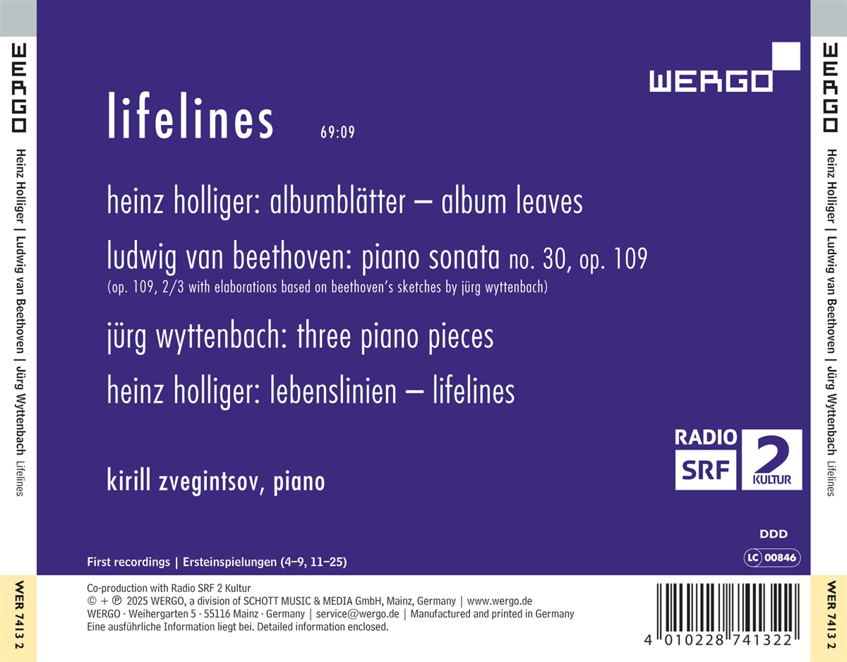 Heinz Holliger, exzeptioneller Oboist, Pianist und Komponist, hat nach seinem Werk „Elis – Drei Nachtstücke“ von 1961 zunächst fast 40 Jahre lang nichts mehr für Klavier komponiert. Eine ganze Folge von seit Anfang des 21. Jahrhunderts entstandenen musikalischen Hommagen und Geburtstagsgrüßen erschien dann 2019 unter dem Schumannesken Titel „Albumblätter“ und wird hier von Kirill Zvegintsov erstmals komplett eingespielt. Es handelt sich um Holliger-typisch höchst diffizil gedrechselte Kabinettstückchen mit vielerlei Bezügen, die im Booklettext kundig aufgeschlüsselt werden. Kombiniert werden diese Werke mit frühen und späten Klavierwerken des 2021 verstorbenen Schweizer Komponisten und Pianisten Jürg Wyttenbach, den mit Holliger eine enge musikalische Beziehung verband. In den letzten Jahren seines Lebens beschäftigte diesen Experten für Neue Musik die gewagte Aufgabe, Skizzen Beethovens für einen alternativen dritten Satz zur Klaviersonate op. 109 zu vervollständigen – ein Unterfangen, das nur ein so metierfester Pianist und Komponist angehen darf. In seinen letzten Lebenstagen konnte Wyttenbach noch die Uraufführung dieser Rekonstruktion durch Zvegintsov miterleben. Der ukrainische Pianist kombiniert und konfrontiert dieses Experiment hier anregend mit den modernen Originalwerken.