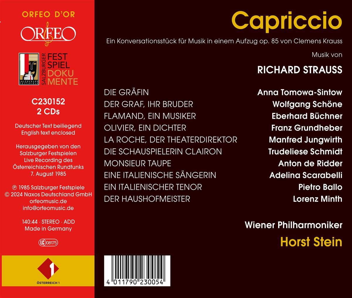 Tomowa-Sintow, Anna / Büchner, Eberhard / Schöne, Wolfgang / Grundheber, Franz / Jungwirth, Manfred / Schmidt, Trueliese / Ridder, Anton de / Scarabelli, Adelina / Ballo, Pietro / Minth, Lorenz / Stein, Horst / Wiener Philharmoniker