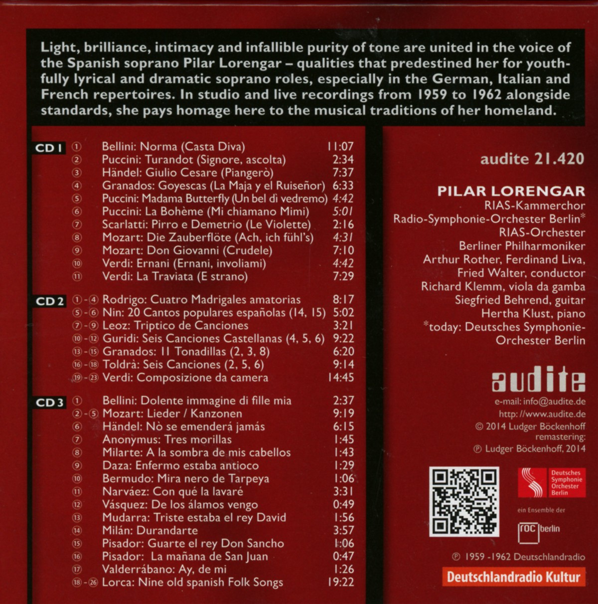 Behrend, Siegfried / Berliner Philharmoniker / Berlin RIAS Orchestra / Klemm, Richard / Klust, Hertha / Lorengar, Pilar / RIAS Kammerchor