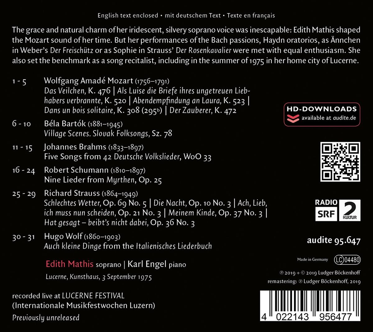 Edith Mathis singt Mozart, Bartók, Brahms, Schumann, Strauss & Wolf