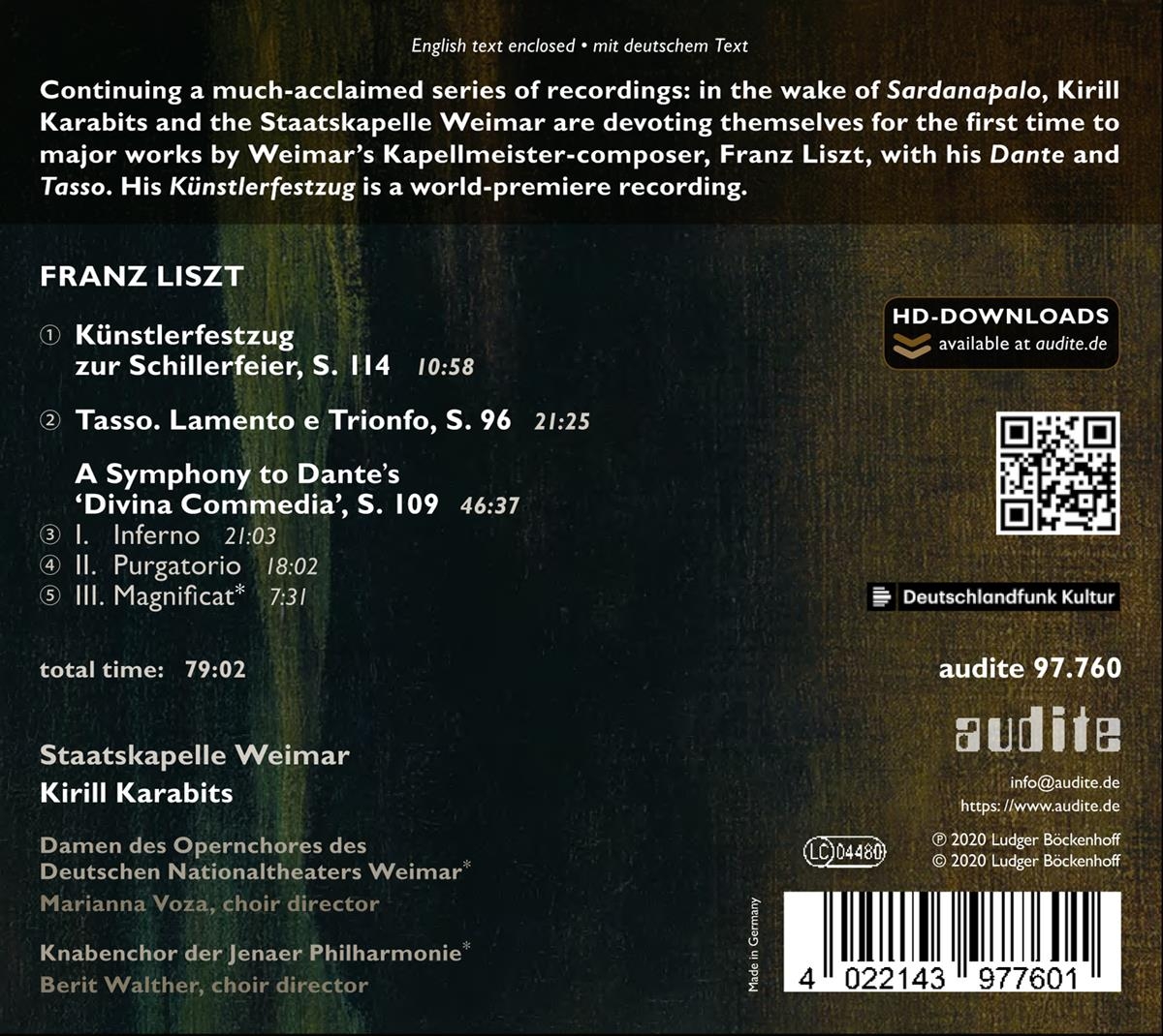Listz: Künstlerfestzug, Tasso, Dante Sinfonie