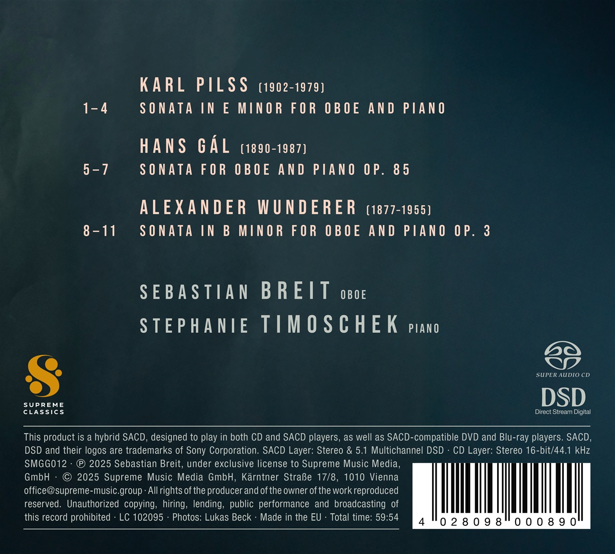 Den einzigartigen Wiener Streicherklang schätzen Musikfreunde in aller Welt. Es gibt allerdings einen weiteren besonderen Klang: jenen der Wiener Oboe. Sebastian Breit, Solo-Oboist der Wiener Philharmoniker, rückt sein Instrument in den Fokus dieses Albums. Es sind Entdeckungen aus der goldenen Ära der Wiener Oboe. Charmant belegen die Raritäten, warum die Wiener Oboe ‚anders ist als die anderen‘. Sebastian Breit stellt die Wiener Oboe – in Bauart und Klang im deutlichen Unterschied zur Französischen Oboe – in ihrem ureigensten Repertoire vor. Es sind drei Sonaten, welche die Besonderheiten der Wiener Musizier- und Spieltradition in idealer Weise zum Ausdruck bringen. Sämtliche Stücke sind in ihrer Entstehungszeit speziell für die Wiener Oboe geschrieben worden. Es sind Kompositionen aus der Feder von Alexander Wunderer, selbst Oboist der Wiener Philharmoniker, Hans Gal und Karl Pilss.