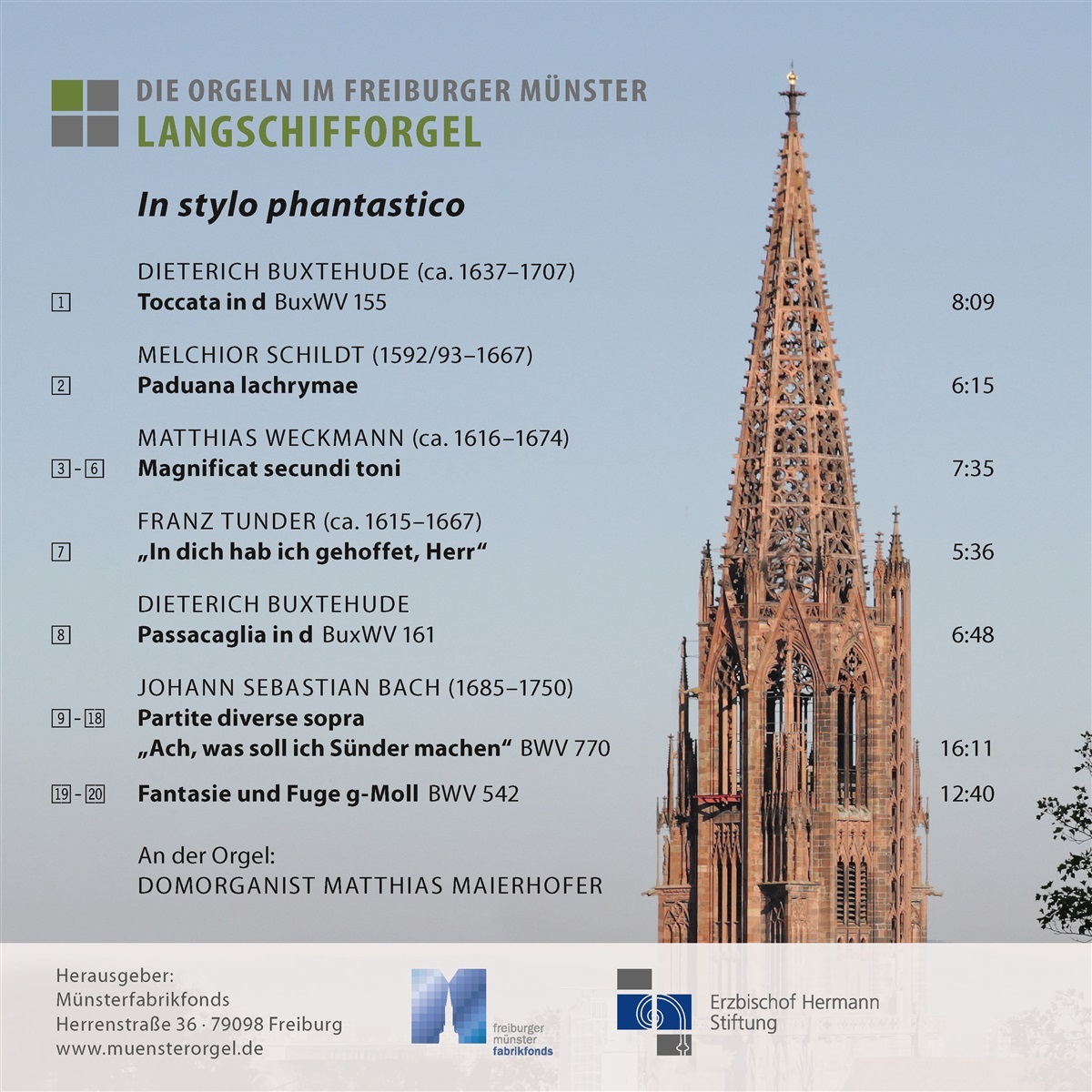 Domorganist Matthias Maierhofer stellt auf dem vorliegenden Album die Langschifforgel (Marcussen 1965) vor. Der Schwerpunkt der ausgewählten Werke liegt hier auf dem ‚Stylus phantasticus‘, ein im italienischen Frühbarock Kompositionsstil, der in der norddeutschen Orgelschule seinen Höhepunkt fand. Im ‚Stylus phantasticus‘ gehaltene Werke zeichnen sich durch ein dramatisches Spiel mit Improvisationen aus, bei dem kurze, unterschiedliche und teilweise dissonante, Figuren, chromatische Abschnitte und virtuose Läufe miteinander verknüpft werden. Für das Album wurden Werke von Dietrich Buxtehude, Melchior Schildt, Matthias Weckmann, Franz Tunder und Johann Sebastian Bach ausgewählt.