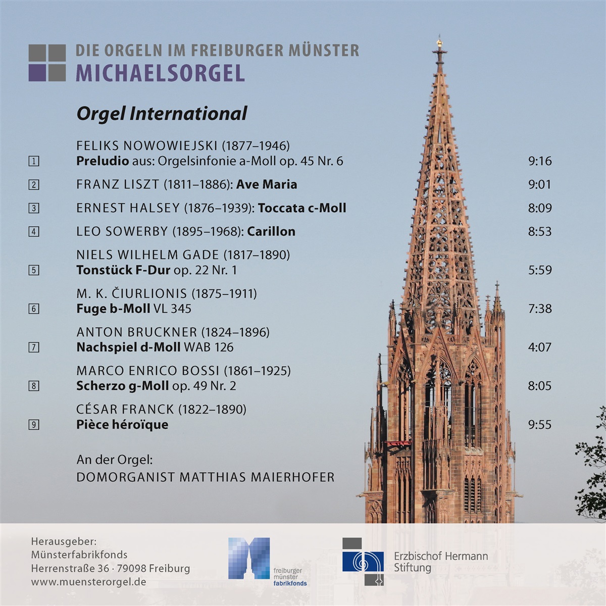 Domorganist Matthias Maierhofer stellt auf diesem Album eine betont internationale Auswahl an Werken des 19. und 20. Jahrhunderts vor: Es enthält Kompositionen von Felix Nowowiejski (aus Polen), Franz Liszt (Österreich-Ungarn) , Ernest Halsey (Vereinigtes Königreich) , Leo Sowerby (USA) , Niels Wilhelm Gade (Dänemark) , Mikalojus Konstantinas Ciurlionis (Litauen) , Anton Bruckner (Österreich) , Marco Enrico Bossi (Italien) und Cesar Franck (Frankreich).