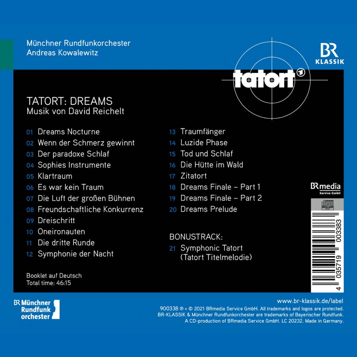 Für den Münchner Tatort „Dreams“, dem mittlerweile 87. Fall der Kommissare Leitmayr und Batic, hat der zweifach mit dem Deutschen Filmmusikpreis ausgezeichnete Münchner Komponist David Reichelt die Musik geschrieben; das Münchner Rundfunkorchester unter Leitung von Andreas Kowalewitz hat sie eingespielt. Das Orchester spielt auch im Fernsehfilm eine nicht unwichtige Rolle, dort steht freilich der Chefdirigent Ivan Repuši? selbst am Pult. Reichelts Musik bewegt sich im Klanggewand der traditionellen symphonischen Musik; darüber hinaus ist die Partitur auch mit modernen Klängen, etwa Samples und elektronischen Elementen, angereichert.