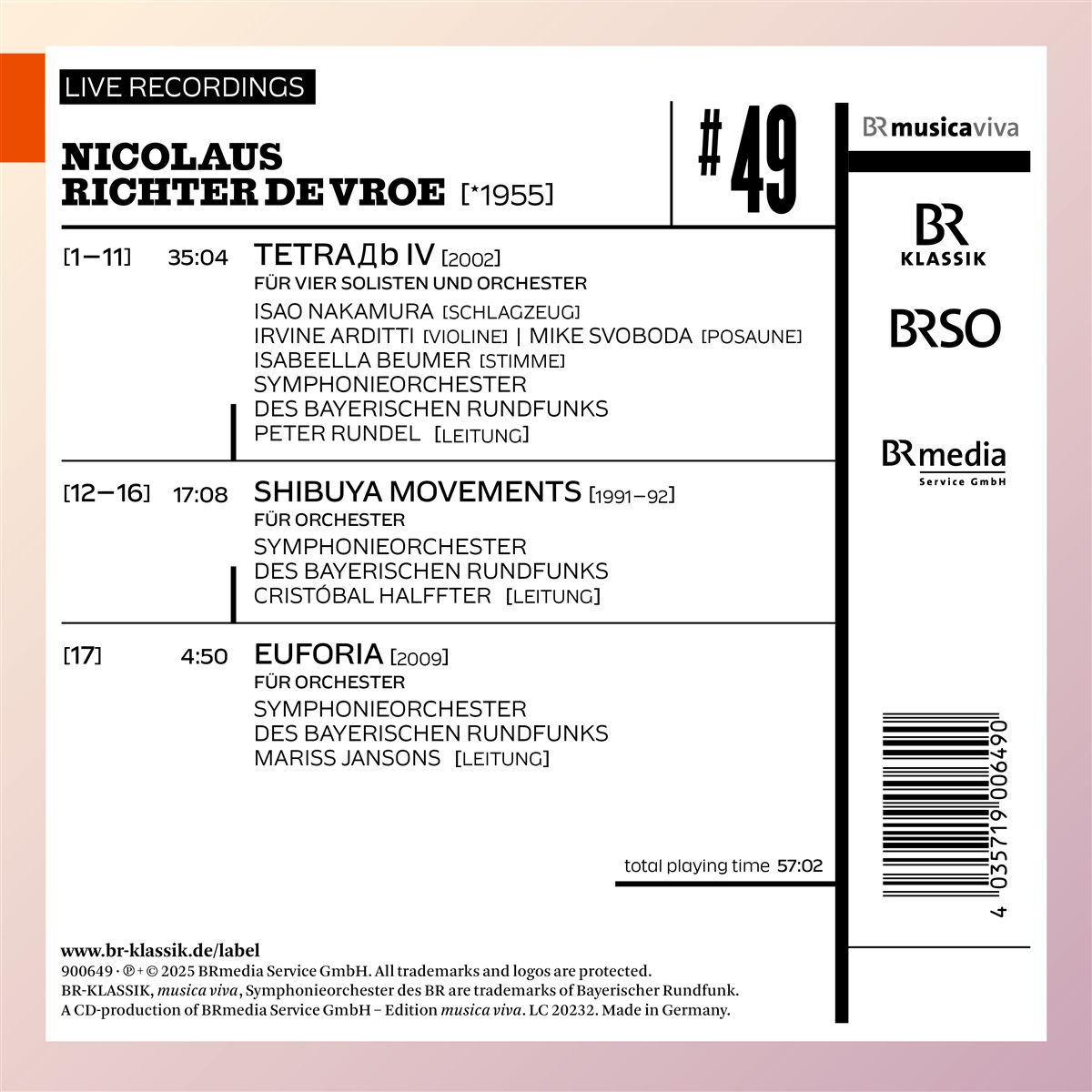 Arditti, Irvine / Beumer, Isabeella / Halffter, Cristóbal / Jansons, Mariss / Nakamura, Isao / Rundel, Peter / Svoboda, Mike / Symphonieorchester des Bayerischen Rundfunks