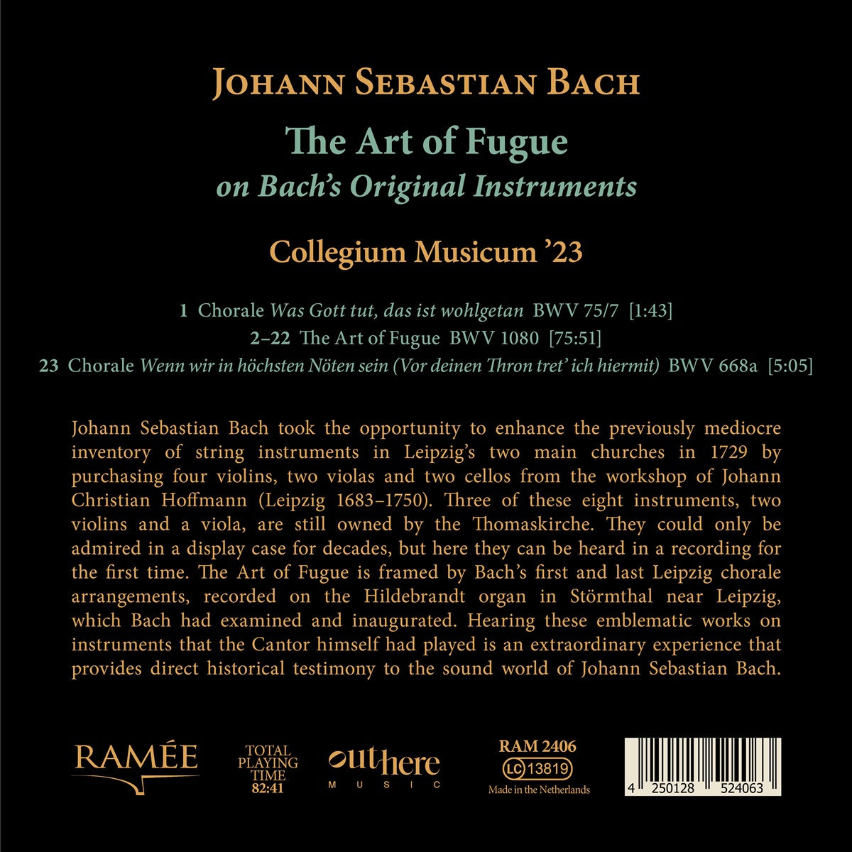 Im Jahr 1729 ergriff Johann Sebastian Bach die Gelegenheit, den bis dahin mittelmäßigen Bestand an Streichinstrumenten in den beiden Hauptkirchen Leipzigs durch den Kauf von vier Geigen, zwei Bratschen und zwei Celli aus der Werkstatt von Johann Christian Hoffmann (Leipzig 1683‒1750) aufzubessern. Drei dieser acht Instrumente, zwei Geigen und eine Bratsche, befinden sich noch heute im Besitz der Thomaskirche. Jahrzehntelang waren sie nur in einer Vitrine zu bewundern – hier sind sie erstmals auf einer Aufnahme zu hören. „Die Kunst der Fuge“ wird eingerahmt von Bachs erster und letzter Leipziger Choralbearbeitung, eingespielt auf der Hildebrandt-Orgel in Störmthal bei Leipzig, die Bach selbst begutachtet und eingeweiht hatte. Diese emblematischen Werke auf Instrumenten zu hören, die der Kantor selbst gespielt hat, ist ein außergewöhnliches Erlebnis, das ein direktes historisches Zeugnis der Klangwelt von Johann Sebastian Bach liefert.