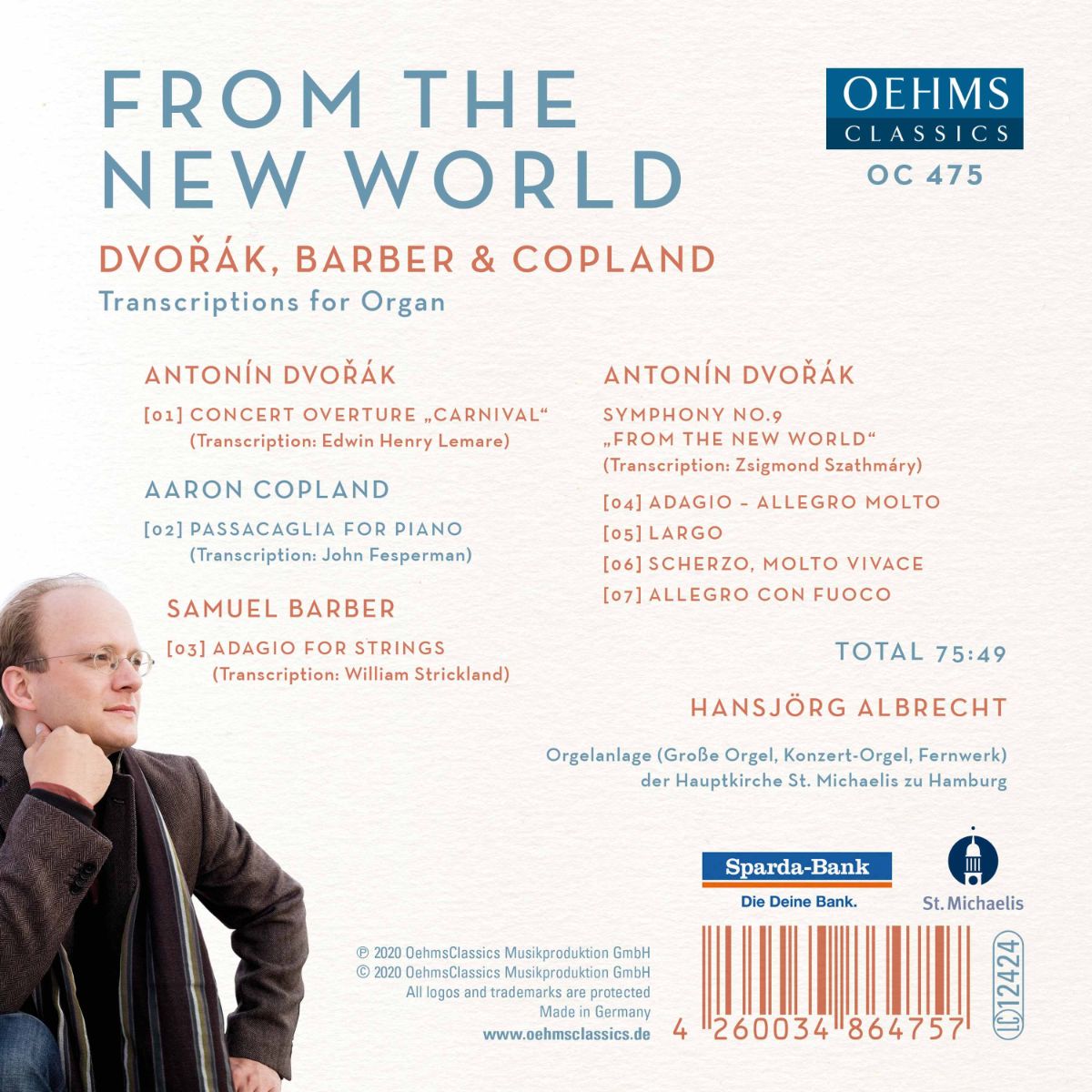 Auf dem neuen Album Hansjörg Albrechts ist Dvo?áks Magnum Opus in einer Transkription für Orgel zu hören. Flankiert wird die Sinfonie durch Dvo?áks Konzertouvertüre „Karneval“, Aaron Coplands „Passacaglia for Piano“ und Samuel Barbers „Adagio for Strings“, ebenfalls in Transkriptionen für Orgel.