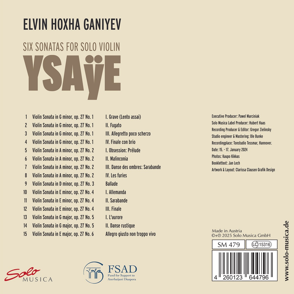 Der Violinist Elvin Hoxha Ganiyev, der nun seine Interpretationen der Sonaten vorlegt, schreibt dazu: „Was Ysaÿes Solosonaten so außergewöhnlich macht, ist der Reichtum ihrer Harmonien. Sie bieten unendliche Möglichkeiten, ein breites Spektrum an Kontrasten in der Klangprojektion und geigerischen Effekten zu erforschen, wenn man sich mit ihnen beschäftigt. Für mich sind diese Werke wie ein grenzenloser Ozean, in dem man bei jedem Tauchgang etwas Neues entdeckt und der einen in eine unendliche Palette von Farben und Emotionen einhüllt. Die Erfahrung, sie sowohl zu spielen als auch zu hören, ist schlichtweg atemberaubend, da sie einen in eine Welt ständiger Entdeckungen einladen, in der die Musik zu atmen und sich mit jeder Interpretation zu verändern scheint.“