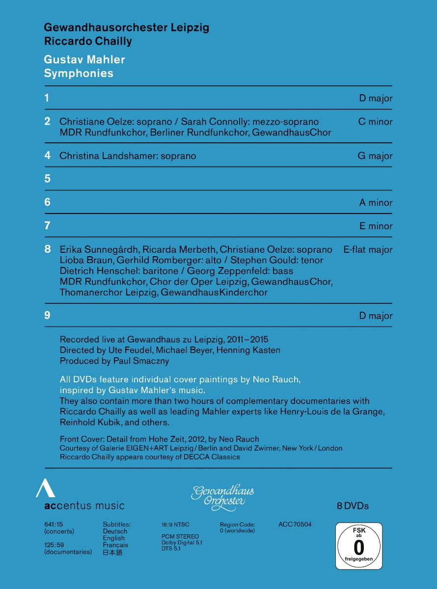 Die in dieser Box enthaltenen acht Mahler-Sinfonien (es fehlt lediglich die Sinfonie Nr. 3 und das Fragment der 10.) entstanden allesamt als Liveaufzeichnungen im Rahmen des Leipziger Mahler-Zyklus, der mit dem umjubelten Mahler Festival im Jahr 2011 begann. Sie bestätigten einmal mehr den Ruf des Gewandhausorchesters als eines der wichtigsten Mahler-Referenzorchester, der sich insbesondere durch die intensive Auseinandersetzung mit Mahlers Oeuvre unter der Leitung des damaligen Gewandhauskapellmeisters Riccardo Chailly erneut verfestigte.