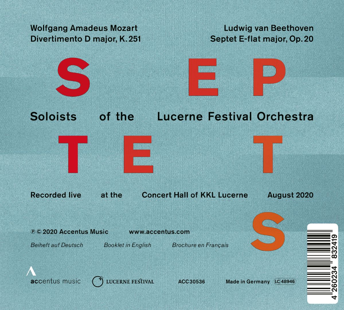 Beethovens strahlendes und unterhaltsames Septett verbindet Logik mit Eingängigkeit und offeriert ein geistiges musikalisches Gespräch. Die Solisten des Solisten des Lucerne Festival Orchestra musizieren spielfreudig und hochklassig. Als Ergänzung ist Mozarts fröhlich-perlendes Nannerl-Septett zu hören.