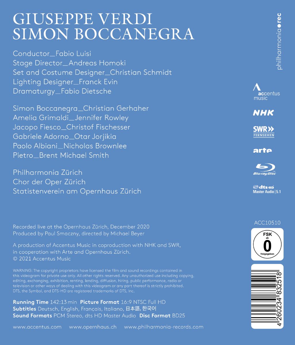 Im Dezember 2020 feierte Andreas Homokis neue Inszenierung von Verdis „Simon Boccanegra“ seine Premiere am Opernhaus Zürich. Christian Gerhaher gab sein gefeiertes Debüt in der Hauptrolle – pandemiebedingt nur vor 50 Zuschauern im Saal und mit dem Orchester im Probenraum am 1 km entfernten Kreuzplatz platziert. Die Oper in der TV-Regie von Michael Beyer wurde live im Fernsehen übertragen. Die Kritiker schwärmten: »Man erlebt Mimik und Gestik fast hautnah, erkennt erst in der Großaufnahme, wie beteiligt die Protagonisten bis in jeden Wimpernschlag am Geschehen sind.« (FAZ)
