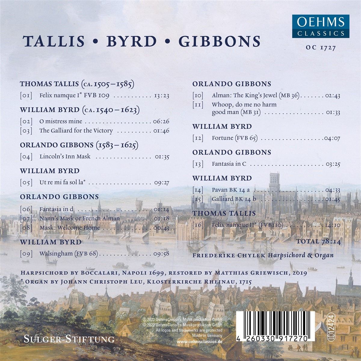 Das Werk von William Byrd zeichnet sich vor allem durch die Vielfalt der Gattungen und Strukturen aus. Besonders deutlich wird dies in seiner einzigartigen Musik für Tasteninstrumente. Der Einfluss, den Byrd auch auf die kontinentale Entwicklung der Klaviermusik hatte, bleibt bemerkenswert. Auf dem vorliegenden Album wurden Werke Byrds denen zweier Zeitgenossen gegenübergestellt: Thomas Tallis, langjähriger Mentor Byrds und Orlando Gibbons, eine Art jüngerer Nachfolger derselben musikalischen Tradition. Friederike Chylek spielt auf der Orgel der Klosterkirche Rheinau von Johann Christoph Leu, 1715 und einem (2019 restaurierten) Cembalo von Giovanni Natale Boccalari aus Neapel von 1699.
