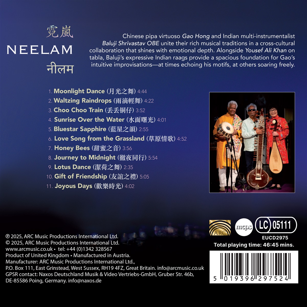 Diese faszinierende Zusammenarbeit vereint zwei international renommierte Künstler – die Pipa-Meisterin Gao Hong und den Multi-Instrumentalisten Baluji Shrivastav – zu einer zeitlosen und zutiefst persönlichen musikalischen Entdeckungsreise. Das Album verbindet die tief verwurzelte Tradition der klassischen indischen Musik mit der expressiven Freiheit der chinesischen Improvisation und ist ein eindrucksvoller Beweis für interkulturelle Harmonie. Verankert durch die rhythmische Feinheit von Yousef Ali Khan an der Tabla, legt Shrivastav mit indischen Ragas wie „Bhairavi“, „Dhani“ und „Kirvani“ einen bewegenden Grundstein, wobei jeder einzelne einen ganz eigenen Ausdruck hat. Hongs Antwort ist spontan und fließend, ihre Pipa schlängelt sich mit lyrischer Anmut und emotionaler Tiefe um diese Rahmenstrukturen herum und verlässt sie gelegentlich ganz.