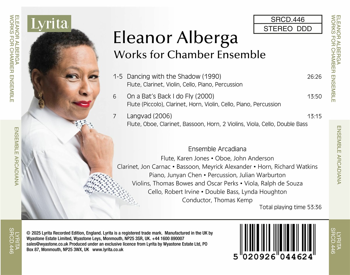 Eleanor Alberga ist stets bemüht, ihren Zuhörern zu vermitteln, dass ihre Stücke als reine Musik ohne Erzählung und Assoziationen genossen werden können. So rufen die drei Stücke dieses Albums unzählige verschiedene Stimmungen, Texturen, Beziehungen und Energien hervor, die jeden einzelnen Zuhörer auf besondere Weise ansprechen. Aber Albergas stets neugierige, erfinderische und fruchtbare Sensibilität bedeutet, dass fast immer ein faszinierender Subtext ihrer eigenen Handschrift in allem steckt, was sie schreibt. „Dancing with the Shadow” wurde 1990 geschrieben und ist für sechs Soloinstrumentalisten komponiert. Alberga konzipierte das Stück als Beschwörung der Versuche des Individuums, seine dunklere Seite, den ‚Schatten‘ des Titels, zu erforschen. Sie beschreibt das Stück als ‚eine konsequente Auseinandersetzung mit den negativen und positiven Seiten der menschlichen Psyche und eine Darstellung davon, wie ein Individuum sich mit den Reichtümern seines Schattens arrangiert und sie sogar annimmt‘. Die Reise ist ein spielerischer Dialog – mal verträumt, mal lebhaft, mal nachdenklich und mal humorvoll. Jeder Satz ist für eine andere Instrumentenkombination komponiert, und mit jedem weiteren Satz kommt ein zusätzlicher Musiker hinzu. Zehn Jahre nach „Dancing with the Shadow“ schuf Alberga ein weiteres Werk, „On a Bat’s Back I do Fly“, diesmal inspiriert von einem Lied aus Shakespeares „Der Sturm“. Die Komponistin setzt gestimmte Perkussionsinstrumente ein, die den Zuhörer sanft in Ariels verspieltes Miniaturreich entführen – eine Welt im Gegenlicht, wie Alberga sie beschreibt. „Langvad“ wurde sechs Jahre nach „On a Bat’s Back I do Fly“ für ein Sommer-Kammermusikfestival komponiert, das von Albergas Ehemann, dem Geiger Thomas Bowes, veranstaltet wurde. „Langvad“ besteht aus einem Satz, in dem sich eine Vielzahl unterschiedlicher Stimmungen widerspiegeln.