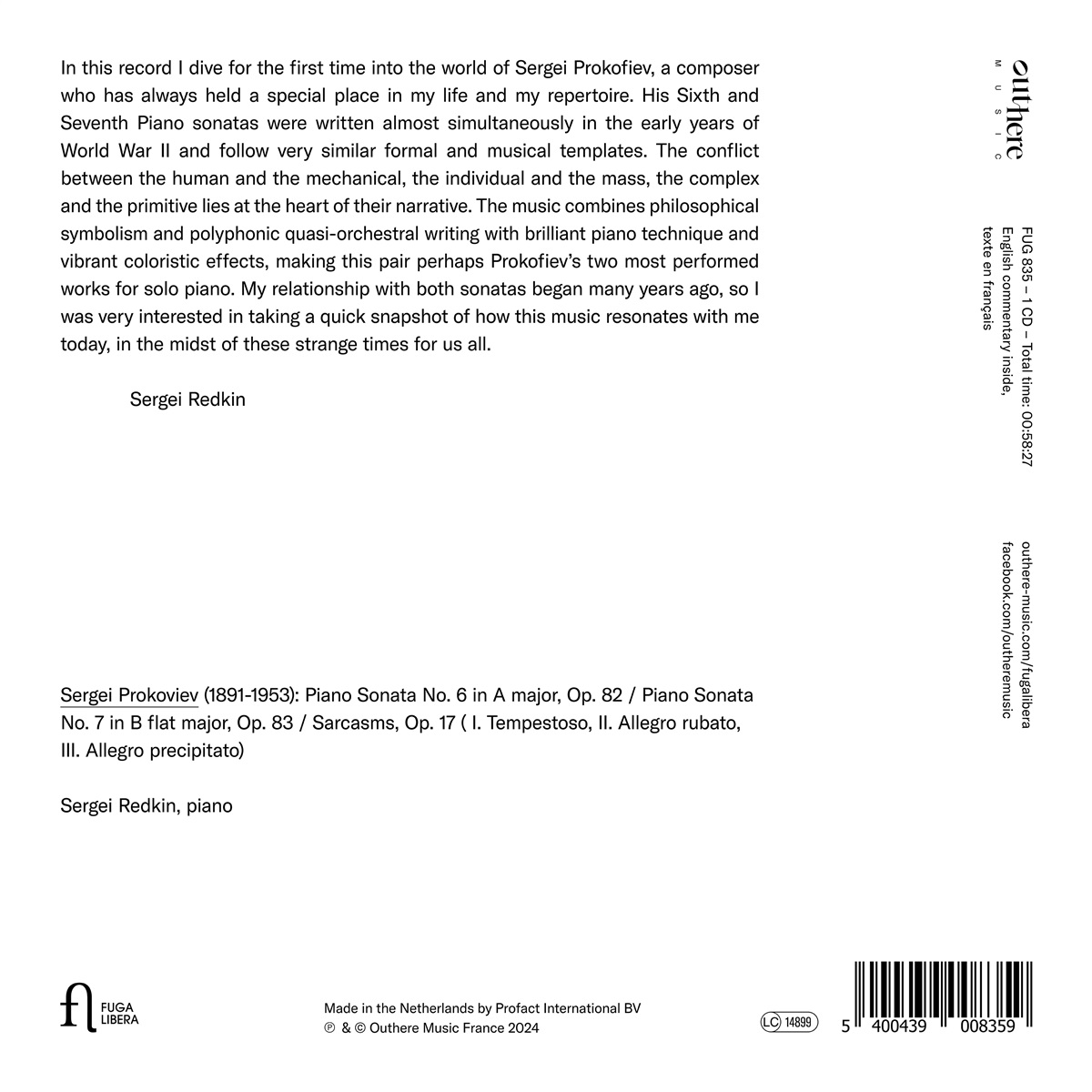 Sergei Redkin sagt zu seiner Veröffentlichung: Diese Aufnahme ist das erste Mal, dass ich in die Welt von Sergej Prokofjew eintauche, einem Komponisten, der immer einen besonderen Platz in meinem Leben und in meinem Repertoire eingenommen hat. Seine sechste und siebte Klaviersonate wurden fast gleichzeitig zu Beginn des Zweiten Weltkriegs geschrieben und sind sich in Form und Inhalt sehr ähnlich. Der Konflikt zwischen Mensch und Maschine, dem Individuum und dem Kollektiv, der Komplexität und der Einfachheit steht im Mittelpunkt ihrer Erzählung. Die Musik verbindet philosophische Symbolik und eine fast orchestrale Polyphonie mit brillanter Klaviertechnik und lebhaften koloristischen Effekten, was diese beiden Werke zu den vielleicht am häufigsten aufgeführten Werken Prokofjews für Klavier solo macht. Meine Verbindung zu beiden Sonaten begann vor vielen Jahren, und so war ich sehr daran interessiert, eine kurze Momentaufnahme davon zu machen, wie diese Musik heute, inmitten dieser unruhigen Zeiten, auf mich wirkt.