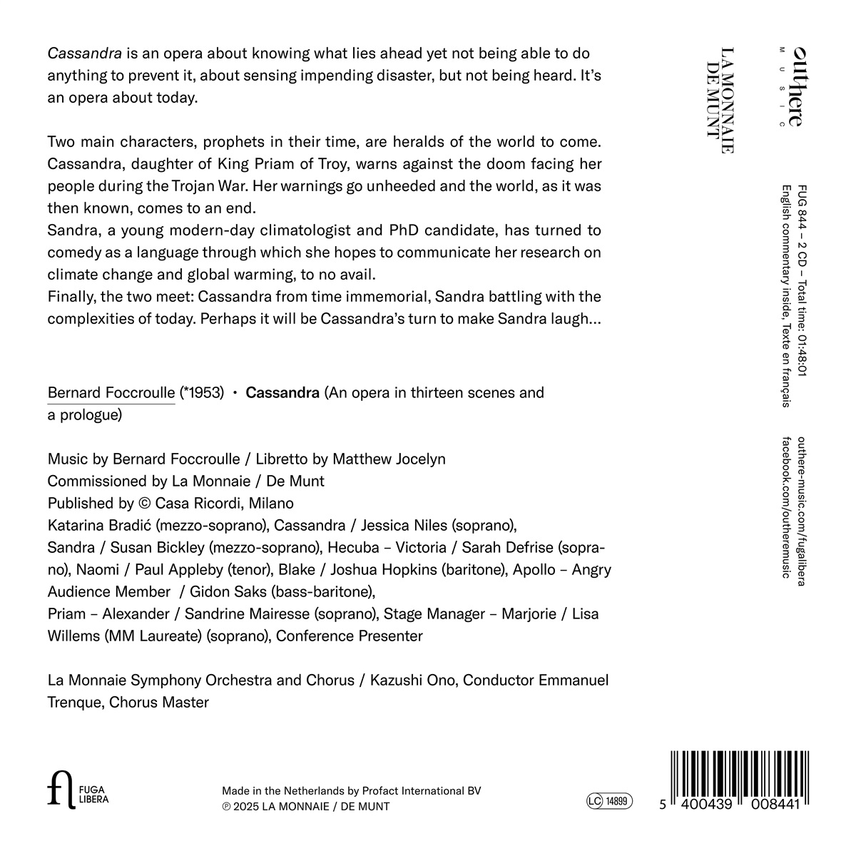 In diesem Werk geht es um einen Zustand, den jeder kennt: man weiß, was vor einem liegt, aber man kann nichts dagegen tun, man spürt das drohende Unheil, aber man wird nicht gehört. Genau diesen Umstand beschreibt die Oper "Cassandra" von Bernard Foccroulle. Zwei Hauptfiguren aus verschiedenen Epochen sind wie Propheten in ihrer Zeit, sind Vorboten der kommenden Welt. Zum einen Cassandra, Tochter des Königs Priamos von Troja: sie warnt vor dem Unheil, das ihrem Volk während des Trojanischen Krieges droht. Ihre Warnungen bleiben ungehört, und die Welt, wie sie damals bekannt war, geht unter. Sandra, eine junge Klimatologin und Doktorandin aus unserer Gegenwart, hat sich der Komödie als Sprache zugewandt, mit der sie ihre Forschungen über den Klimawandel und die globale Erwärmung zu vermitteln hofft - vergeblich. Schließlich treffen die Protagonistinnen aufeinander: Cassandra aus der Antike und Sandra, die mit der Komplexität der Gegenwart kämpft. Vielleicht wird es Cassandra sein, die Sandra zum Lachen bringt...