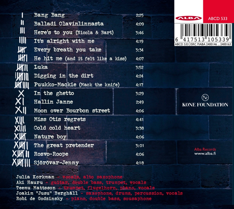 „Songs from the Criminal Record“ bieten den Zuhörern neue Perspektiven, selbst bekannte Lieder neu zu hören. Unter anderem hören Sie düster klingende Versionen von Rautavaaras Lied „Rosvo-Roope“, Nancy Sinatras „Bang, Bang“ und dem (oft missverstandenen) Police-Klassiker „Every Breath You Take“, arrangiert von Aki Hauru.