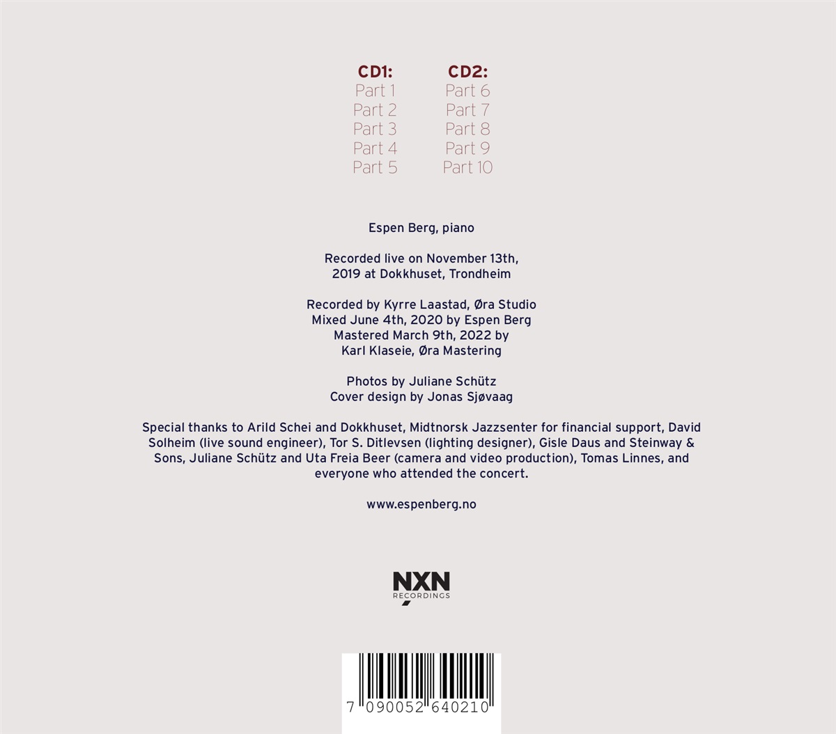Mit „The Trondheim Concert“ kehrt Espen Berg zurück ins Rampenlicht – mit einem vollständig improvisierten Live-Konzert. Die Parallele zu Keith Jarretts berühmten „Köln Concert“ und dem Konzept unmittelbar entstandener Musik ist da nicht weit. Dabei ist das Konzert gleichzeitig Höhepunkt jahrelanger musikalischer Entwicklungen, Erfahrungen und Überlegungen. Musik, die im Moment entsteht, und die Emotionen und Ideen ungefiltert widerspiegelt: einzigartig, nicht wiederholbar, eine endlose und gleichsam flüchtige Ressource, sowohl musikalisch und spirituell.