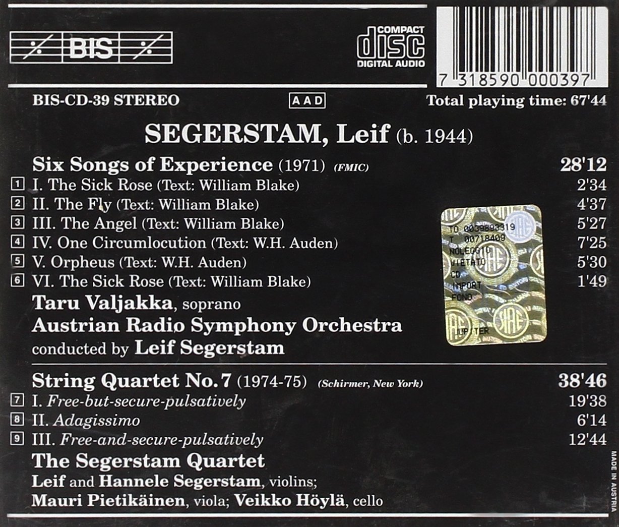 ORF Radio-Symphonieorchester Wien / Segerstam, Leif / Segerstam Quartet / Valjakka, Taru
