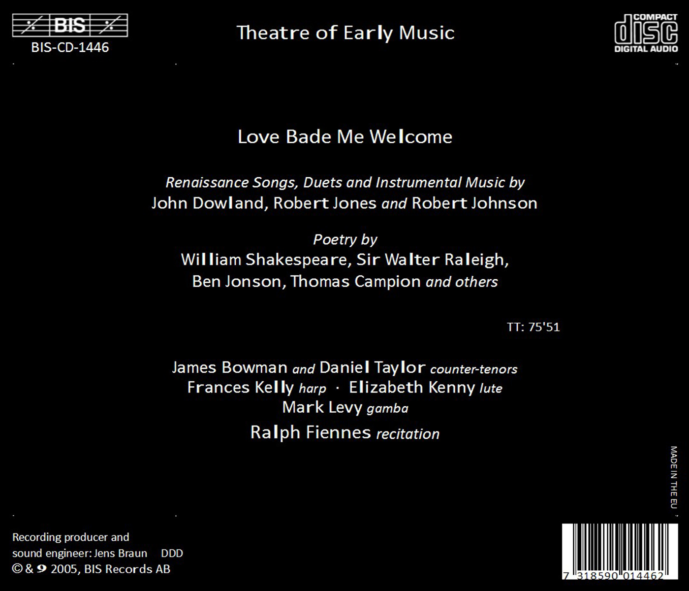 Bowman, James / Fiennes, Ralph / Kelly, Frances / Kenny, Elizabeth / Levy, Mark / Taylor, Daniel / Theatre of Early Music