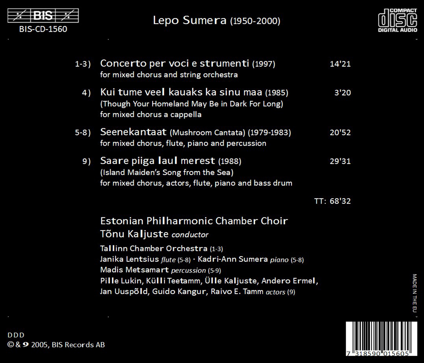 Ermel, Andero / Estonian Philharmonic Chamber Choir / Kaljuste, Tõnu / Kaljuste, Ulle / Kangur, Guido / Lentsius, Janika / Lukin, Pille / Metsamart, Madis / Sumera, Kadri-Ann / Tallinn Chamber Orchestra / Tamm, Raivo E. / Teetamm, Kulli / Uleoja, Mikk / Uuspold, Jan