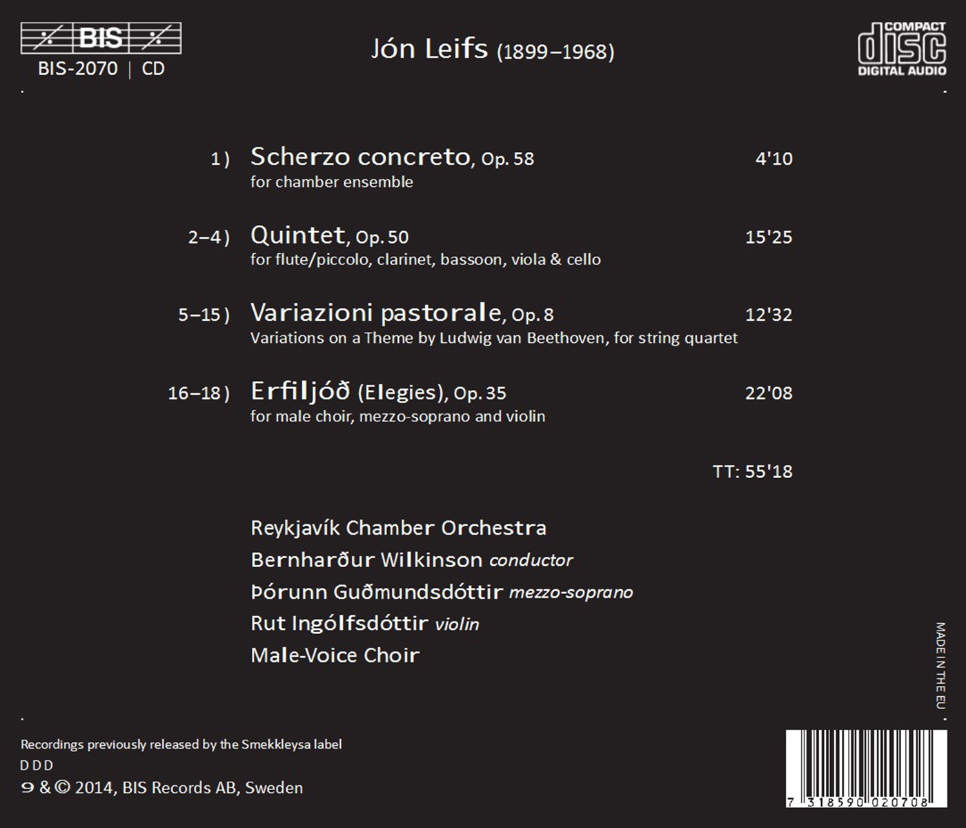 Arnlaugsson, Gudmundur / Askelsson, Arni / Baldvinsson, Johann / Bergporsson, Bragi / Bjornsson, Bjarni Benedikt / Edvaldsdóttir, Sigrún / Einarsson, Runar / Eyjolfsson, Eyjolfur / Gudmundsdottir, Porunn / Gudmundsson, Magnus / Gunnarsson, Sigurour Bjarki / Ingolfsdottir, Inga Ros / Ingolfsdottir, Rut / Ingolfsson, Benedikt / Johannesson, Einar / Jonatansson, Heimir / Jonsson, Hugi / Jorundsson, Einar / Marinosdottir, Porunn Osk / Nardeau, Martial / Þorsteinsson, Hreiðar Ingi / Palsson, Egill Arni / Porolfsson, Hafsteinn / Reykjavik Chamber Orchestra / Vilbergsson, Runar H. / Vilhelmsson, Halldor / Wilkinson, Bernhardur