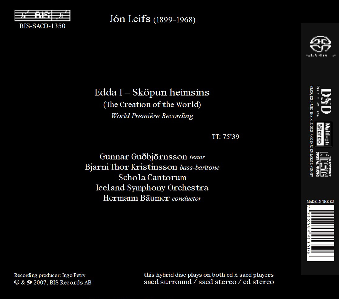 Bäumer, Hermann / Gudbjornsson, Gunnar / Iceland Symphony Orchestra / Kristinsson, Bjarni Thor / Schola Cantorum Reykjavík