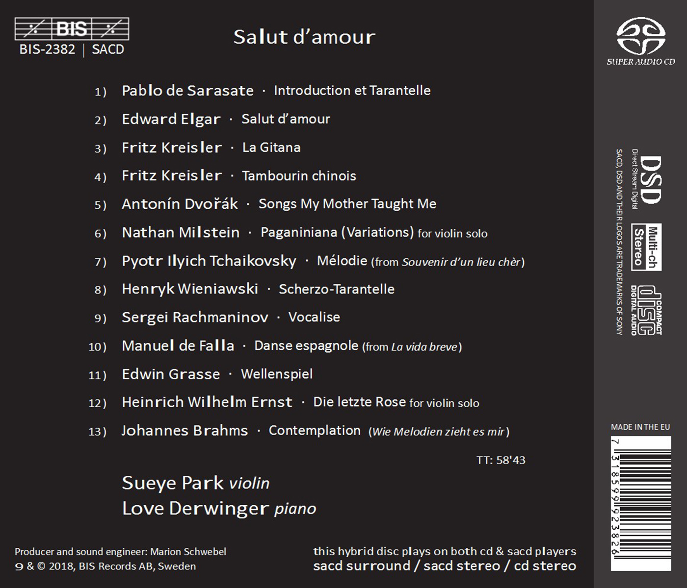 Sueye Park stellte sich 2017 dem Publikum vor mit einer Visitenkarte, die nichts weniger als Paganinis 24 Capricen für Violine solo enthielt. Die im Jahr 2000 in Südkorea geborene Geigerin wird auf dieser Neuaufnahme beliebter Virtuosenstücke und Encores von Love Derwinger begleitet, der selbst einige BIS-Einspielungen in seiner Diskographie hat.