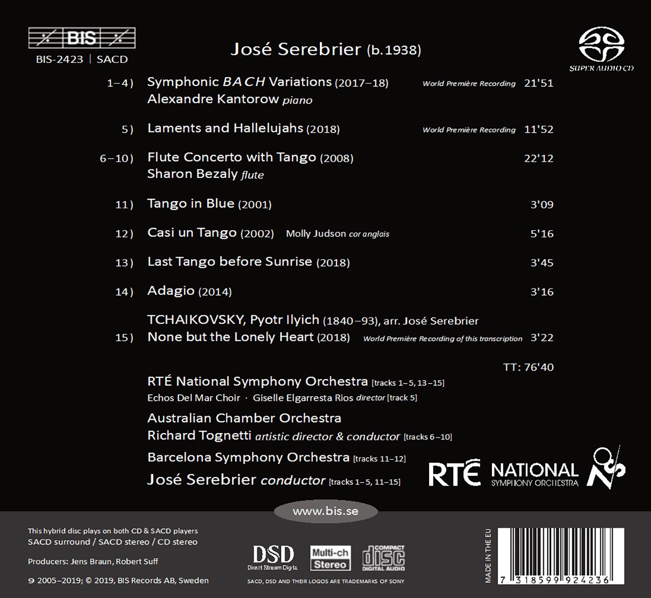 Australian Chamber Orchestra / Barcelona Symphony and Catalonia National Orchestra / Bezaly, Sharon / Echos Del Mar Choir / Ireland RTÉ National Symphony Orchestra / Ireland RTÉ National Symphony Orchestra, string section / Judson, Molly / Kantorow, Alexandre / Serebrier, José / Tognetti, Richard