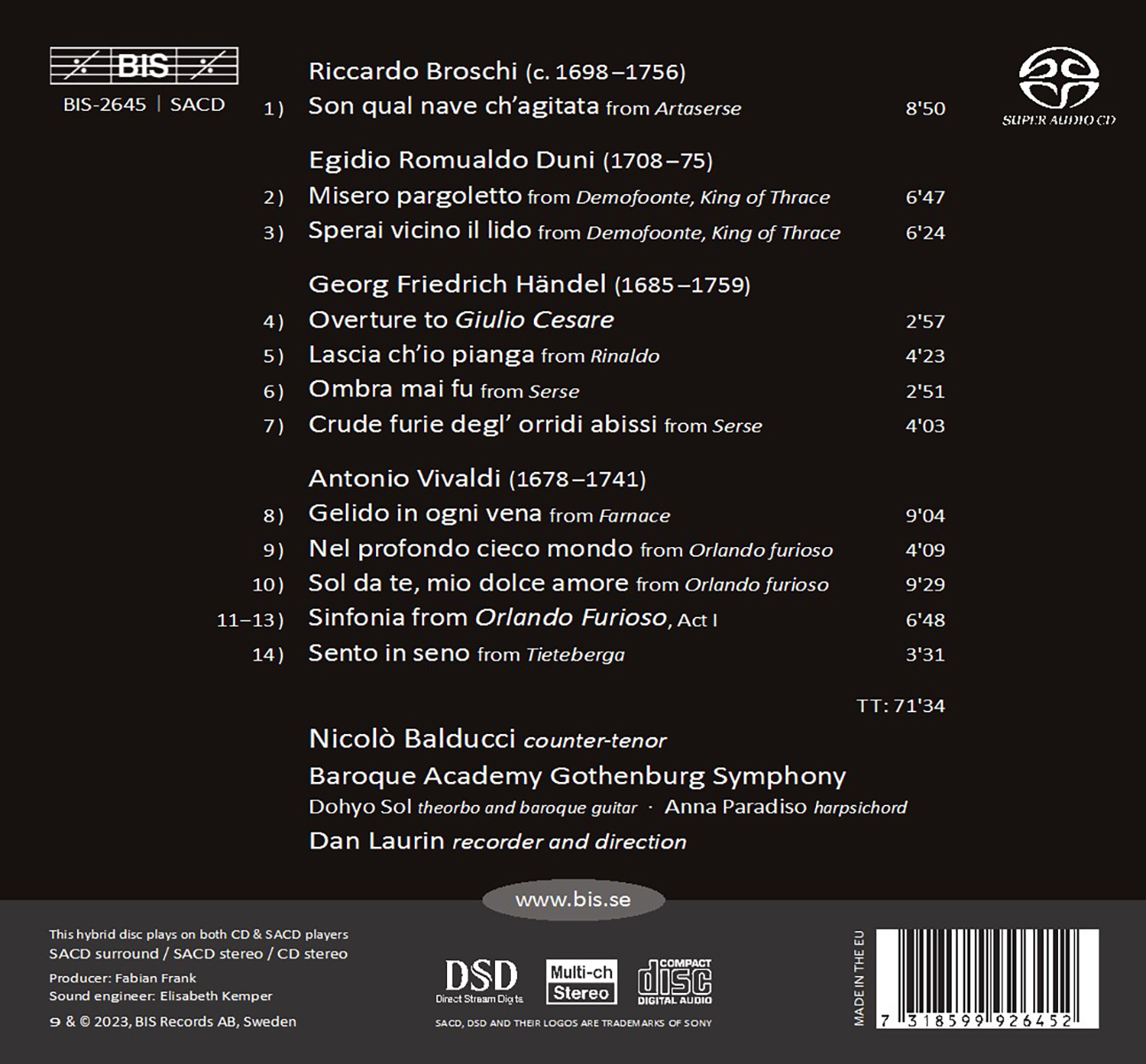 Balducci, Nicolò / Baroque Academy Gothenburg Symphony / Laurin, Dan