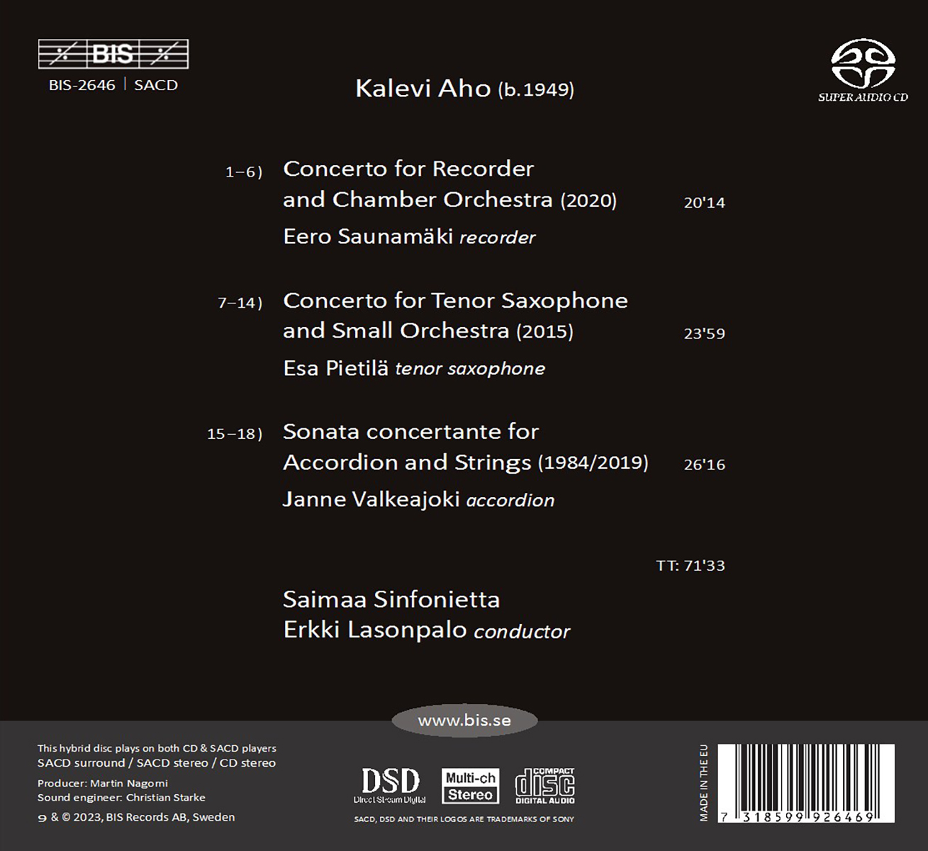 Aho - Konzertante Werke für Blockflöte, Saxophon und Akkordeon