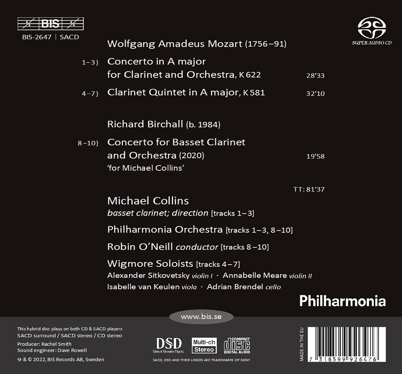 Brendel, Adrian / Collins, Michael / Keulen, Isabelle van / Meare, Annabelle / O'Neill, Robin / Philharmonia Orchestra / Sitkovetsky, Alexander