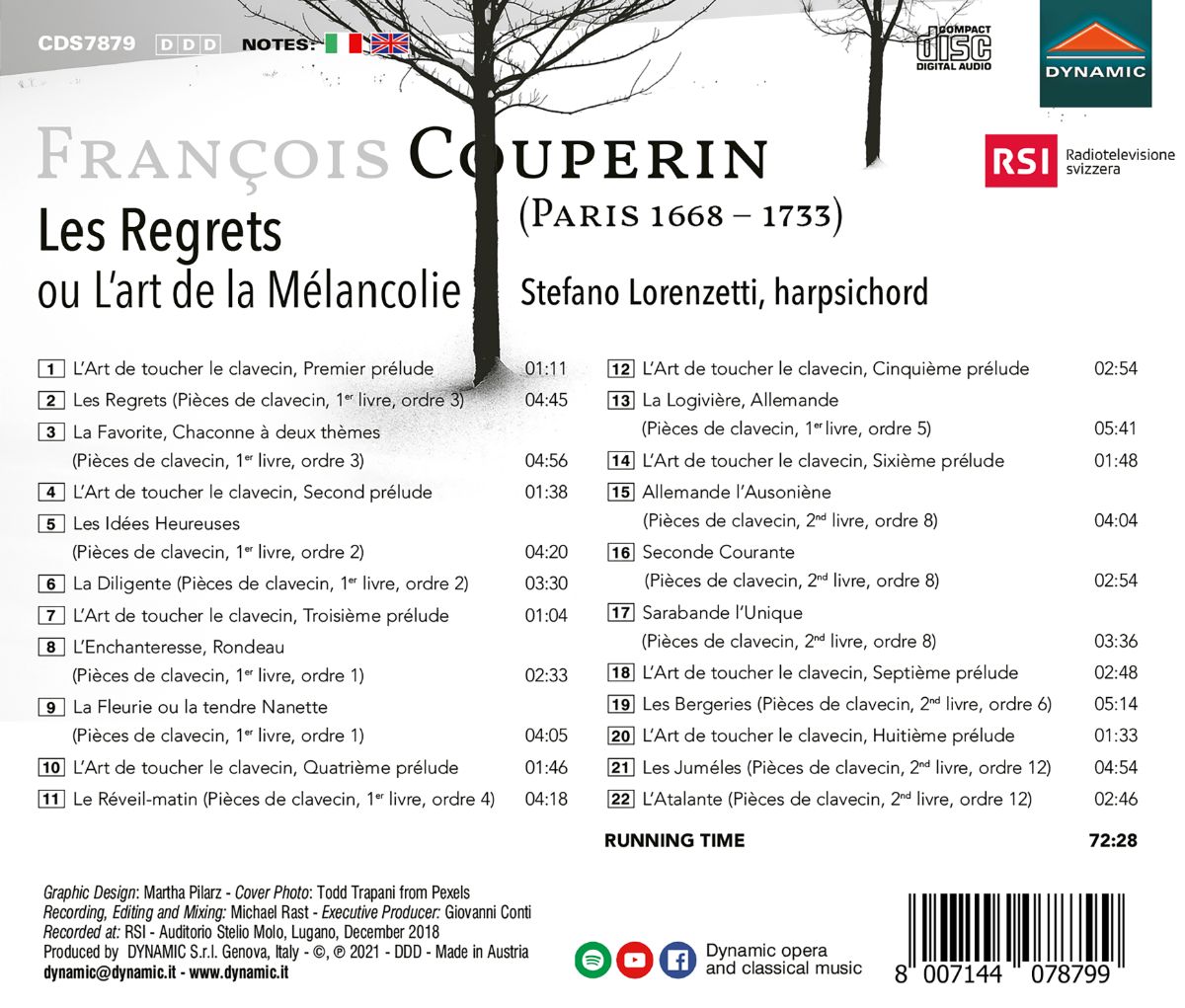 Auf diesem Album hat der Cembalist Stefano Lorenzetti acht Präludien aus Couperins „L'Art de toucher le clavecin“ mit zwei frei assoziierten Stücken aus den ersten beiden Büchern der „Pièces de clavecin“ zu kleinen Suiten kombiniert.