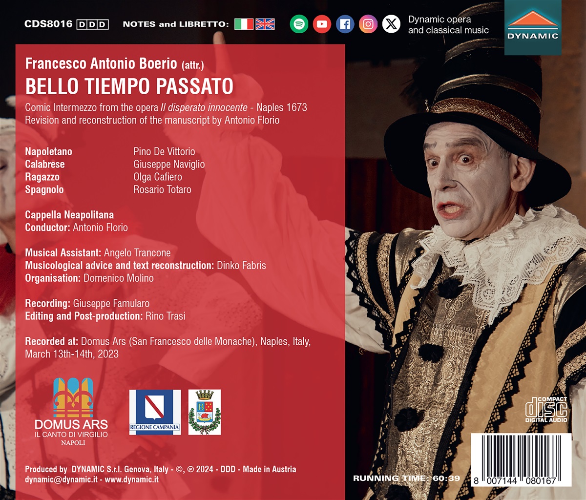 In den frühen 1670er Jahren, kurz nachdem sich die venezianische Oper in Neapel etabliert hatte, begann eine Reihe komischer Theaterfiguren in die weltlichen und geistlichen Opern zu diffundieren. Zu diesen Protagonisten gehörten ‚der Neapolitaner‘, ‚der Kalabrier‘ und ‚der Junge‘. Diese drei Archetypen und ein vierter, ‚der Spanier‘, tauchen im komischen Intermezzo „Bello tiempo passato“ auf. Es gehört zur Oper „Il disperato innocente“ des wenig bekannten Francesco Antonio Boero von 1673. Es ist das älteste erhaltene neapolitanische, komische Intermezzo und Vorbild für weitere Zwischenspiele, die zur Blaupause für die neapolitanische Oper wurden.