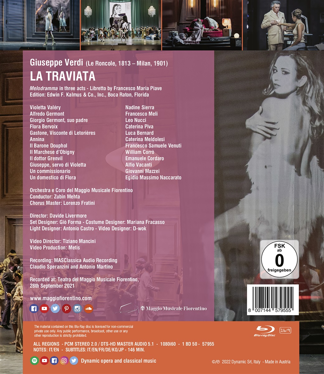 Sierra, Nadine / Meli, Francesco / Nucci, Leo / Bernard, Luca / Meldolesi, Caterina / Venuti, Francesco Samuele / Corro, William / Cordaro, Emanuele / Vacanti, Alfio / Mazzei, Giovanni / Naccarato, Egidio Massimo / Orchestra e Coro del Maggio Musicale Fiorentino / Mehta, Zubin