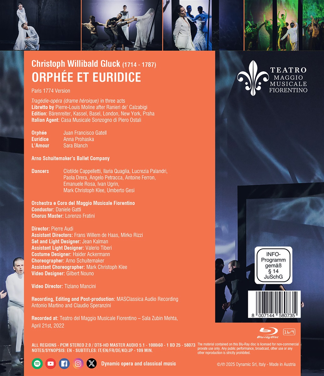 Christoph Willibald Glucks „Orphée et Euridice“ ist ein Meisterwerk der Opernwelt, inspiriert von einer der geheimnisvollsten und grausamsten Geschichten der griechischen Mythologie. Die Götter gestatten Orpheus, in die Unterwelt hinabzusteigen, um seine geliebte Frau Eurydice wieder zum Leben zu erwecken, jedoch unter der Bedingung, dass er sie auf dem Rückweg nicht ansieht. Diese Produktion aus Florenz interpretiert den Mythos neu als eine Geschichte für unsere Zeit. Sie beleuchtet jede Figur einzeln und lässt Musik und Text als einen raffinierteren Psychothriller erleben: So schafft sie eine bewegende und transformative Erzählung, mit der wir uns alle identifizieren können. Die Oper wird von Daniele Gatti dirigiert, der 2015 von italienischen Musikkritikern mit dem Premio „Franco Abbiati“ als bester Dirigent ausgezeichnet wurde. Die herausragende Besetzung wird angeführt von Juan Francisco Gatell, Anna Prohaska und Sara Blanch. Der preisgekrönte Opernregisseur Pierre Audi inszeniert das Werk überwiegend in strengem Schwarz-Weiß, das manchmal durch farbenfrohe Beleuchtung und Videos von Gilbert Nouno aufgelockert wird.