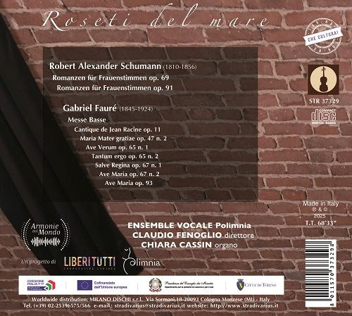 Claudio Fenoglio sagt über dieses Album: In „Roseti del mare” (Rosengärten des Meeres) verflechten sich zwei Metaphern. Der Rosengarten ist der gemeinsame Ort, das facettenreiche, vielfarbige, dornige und zarte Projekt, das den Evolutionsdrang der jungen Interpreten von Polimnia gut verkörpert. Die rätselhafte Weite des Meeres bildet den Rahmen für das konsolidierte Repertoire vieler großer Komponisten. Seine Präsenz manifestiert sich in Robert Schumanns „Romanzen für Frauenstimmen“ („Meerfey“, „Der Wassermann“, „In Meeres Mitten“) und kehrt in den Werken zahlreicher französischer Komponisten wieder (zum Beispiel in Claude Debussys „La Mer“), ein Merkmal, das in der fließenden und eleganten Komposition von Gabriel Fauré, die hier zu hören ist, deutlich zum Ausdruck kommt. An seiner Oberfläche verkörpert das Meer die Spontaneität, Leuchtkraft und Unmittelbarkeit von Faurés Erfindungsgabe, während in seinen Tiefen der Schumannsche Stil wohnt, introspektiv und streng, den Blick auf die Reflexion und die Vielschichtigkeit des Denkens richtend. Mit dem Vokalensemble Polimnia habe ich mich für ein anspruchsvolles Projekt entschieden, das weit entfernt ist von einfachen Transkriptionen oder eher geradlinigen Choradaptionen. Für uns alle war es wie eine Fahrt auf offener See, ohne Halt und ohne ausgetretene Pfade. Eine gefährliche Reise, ohne Gewissheiten, aber voller Möglichkeiten für eine gemeinsame Suche nach den Bedeutungen und Klängen, die die jungen Interpreten im Alter von 17 bis 25 Jahren zum Ausdruck bringen. Dass jung nicht gleichbedeutend mit oberflächlich ist, ist eine Überzeugung, die ich in meiner langjährigen Erfahrung als Leiter des Kinderchors, aus dem das Polimnia Ensemble fast vollständig hervorgegangen ist, gewonnen habe. Das Ergebnis, das wir erzielt haben, ist der Antrieb, der uns zu neuen Herausforderungen und neuen Zukunftsprojekten motiviert.