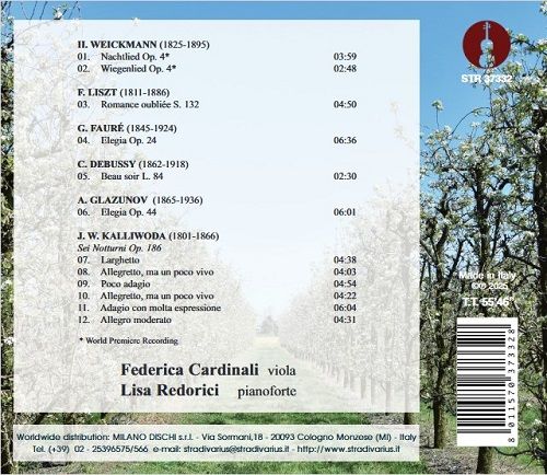 Die jungen Musikerinnen Federica Cardinali (Bratsche) und Lisa Redorici (Klavier) spielen Werke von Hieronymus Weickmann, Franz Liszt, Gabriel Fauré, Claude Debussy, Alexander Glasunow und Jan Křtitel Václav Kalivoda. Bei dem "Nachtlied" und dem "Wiegenlied" von Weickmann handelt es sich um Weltersteinspielungen.