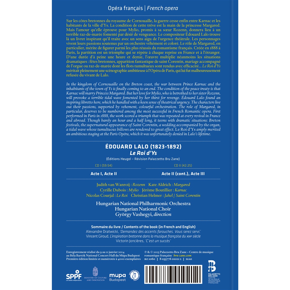 Im Königreich Cornouaille an der bretonischen Küste ist der Krieg zwischen Fürst Karnac und den Bewohnern der Stadt Ys endlich zu Ende. Die Bedingung für den Friedensvertrag ist, dass Karnac die Prinzessin Margared heiratet. Doch ihre Liebe zu Mylio, der mit ihrer Schwester Rozenn verlobt ist, wird eine schreckliche Katastrophe auslösen, die von ihrem Rachedurst genährt wird. Édouard Lalo fand für seine Oper „Le Roy d’Ys“ ein inspirierendes Libretto, das er mit einem selten erreichten Sinn für theatralische Dringlichkeit umsetzte. Getragen von einer vehementen, farbenfrohen Inszenierung, können die Figuren ihre Leidenschaften voll entfalten. Vor allem die Rolle der Margared macht das Werk zu einer der wichtigsten französischen romantischen Opern. 1888 in Paris uraufgeführt, feierte es einen großen Triumph, der bei sämtlichen Wiederaufführungen in den Provinzen und im Ausland bestätigt wurde. Obwohl das Werk kaum zwei Stunden dauert, wimmelt es von dramatischen Situationen: Bretonische Feste, die übernatürliche Erscheinung des Heiligen Corentin, eine von der Orgel begleitete Hochzeit, eine Flutwelle, deren stürmische Wogen mit großer Wirkung dargestellt werden. „Le Roi d'Ys“ erlebt nun die Wertschätzung mit dieser einmaligen Inszenierung an der Pariser Oper, die ihm zu Lalos Lebzeiten leider verwehrt blieb.