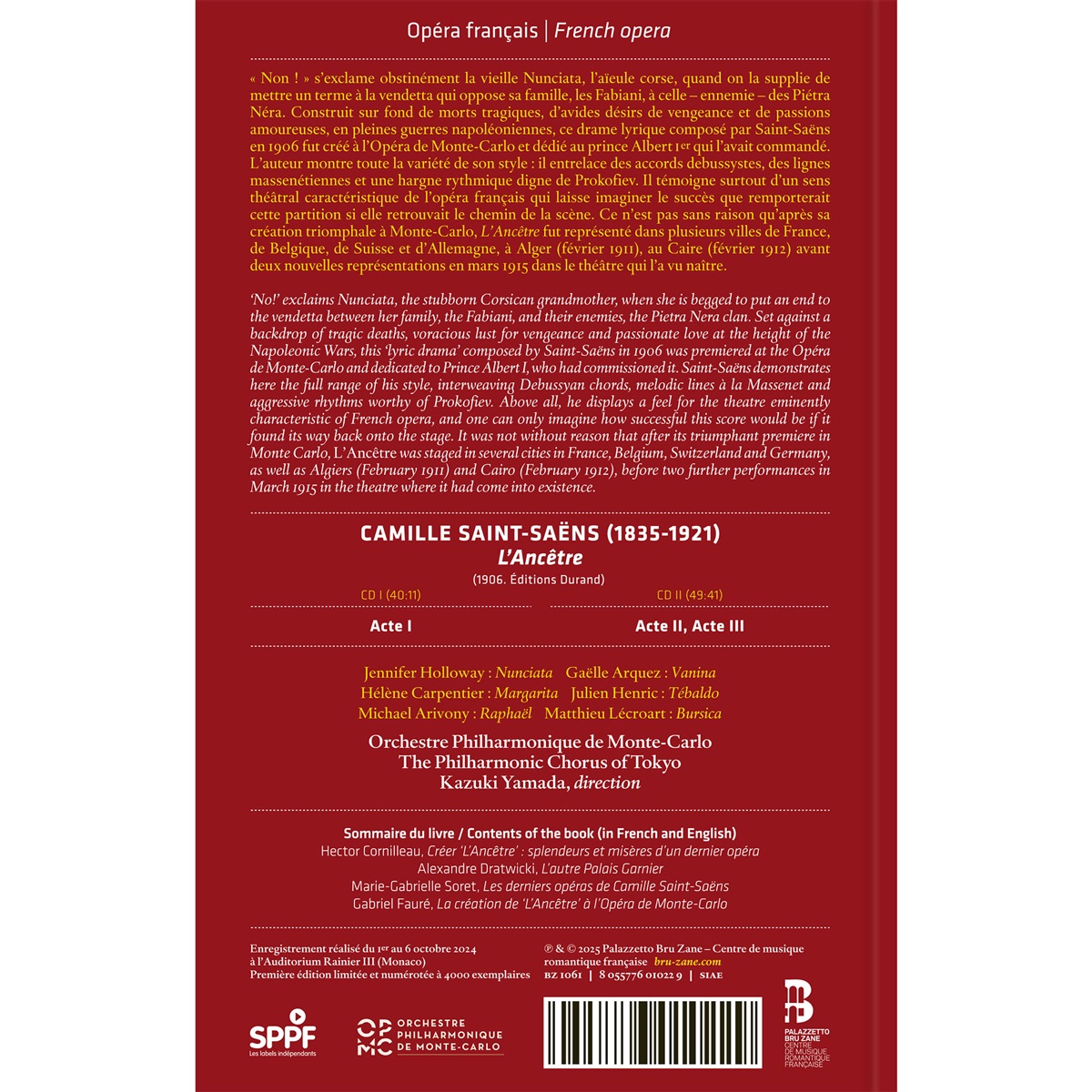 „Nein!", ruft Nunciata, die starrköpfige korsische Großmutter, als man sie bittet, den Rachefeldzug zwischen ihrer Familie, den Fabiani, und ihren Feinden, dem Clan der Pietra Nera, zu beenden. Vor dem Hintergrund tragischer Todesfälle, unersättlicher Rachegelüste und leidenschaftlicher Liebe auf dem Höhepunkt der Napoleonischen Kriege wurde dieses von Saint-Saëns 1906 komponierte „lyrische Drama“ an der Opéra de Monte-Carlo uraufgeführt und Fürst Albert I. gewidmet, der es in Auftrag gegeben hatte. Saint-Saëns zeigt hier die ganze Bandbreite seines Stils, indem er debussianische Akkorde, melodische Linien à la Massenet und aggressive Rhythmen, die Prokofjew würdig sind, miteinander verwebt. Vor allem aber zeigt er ein Gespür für das Theater, wie es für die französische Oper charakteristisch ist, und man kann sich nur vorstellen, wie erfolgreich diese Partitur sein würde, wenn sie wieder auf die Bühne käme. Nicht umsonst wurde "L'Ancêtre" nach seiner triumphalen Uraufführung in Monte Carlo in mehreren Städten Frankreichs, Belgiens, der Schweiz und Deutschlands sowie in Algier (Februar 1911) und Kairo (Februar 1912) aufgeführt, bevor es im März 1915 zwei weitere Aufführungen in dem Theater erlebte, in dem es entstanden war.