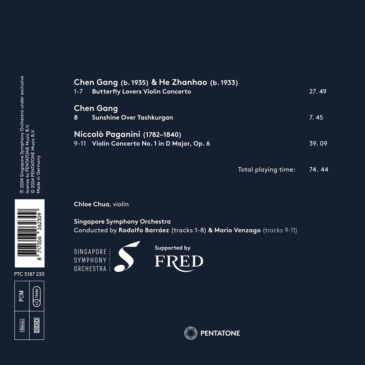 Die junge, aufstrebende, aus Singapur stammende Geigerin Chloe Chua präsentiert ein neues Album, auf dem sie das Violinkonzert „Butterfly Lovers“ von Chen Gang und He Zhanhao mit Niccolò Paganinis erstem Violinkonzert koppelt. Im Butterfly-Lover-Violinkonzert aus dem Jahr 1959 kombinierten Chen und He geschickt das klassisch-westliche Idiom mit Elementen der chinesischen Oper. Es ist bis zum heutigen Tag das bekannteste klassische Werk aus China.