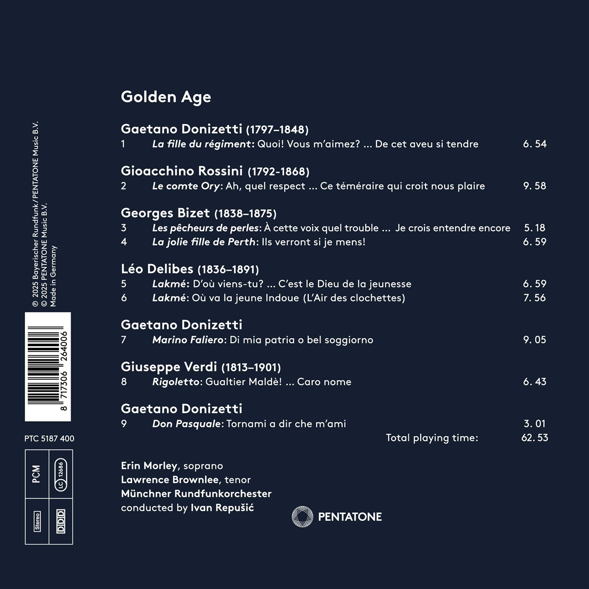 Diese Neuerscheinung zelebriert die glanzvolle Welt der Oper des 19. Jahrhunderts und die zeitlose Schönheit des goldenen Zeitalters des Belcanto. Mit Musik von Gaetano Donizetti, Gioacchino Rossini, Georges Bizet, Léo Delibes und Giuseppe Verdi präsentiert das Album die Sopranistin Erin Morley und den Tenor Lawrence Brownlee – zwei der spannendsten Stimmen der Gegenwart – begleitet vom Münchner Rundfunkorchester unter der Leitung von Ivan Repušić. Gemeinsam verleihen sie dem französischen und italienischen Repertoire mit ihren Darbietungen neuen Glan. Diese sorgfältig zusammengestellte Sammlung einiger Perlen der Opernwelt umfasst ikonische Duette und Arien, die durch ihre Leidenschaft, Schönheit und dramatische Ausstrahlung auch das moderne Publikum begeistern. Die Sopranistin Erin Morley hat erst im vergangenen Jahr Georg Friedrich Händels „Alcina“ aufgenommen und dafür begeisterte Kritiken erhalten. Sie ist weltweit gefragt und hat mit den besten Dirigenten wie Christian Thielemann, Bernard Haitink und Riccardo Chailly zusammengearbeitet. Ivan Repušić ist seit fast 20 Jahren Chefdirigent des Münchner Rundfunkorchesters. Außerdem ist er Chefdirigent der Staatskapelle Weimar und designierter Generalmusikdirektor der Oper Leipzig.