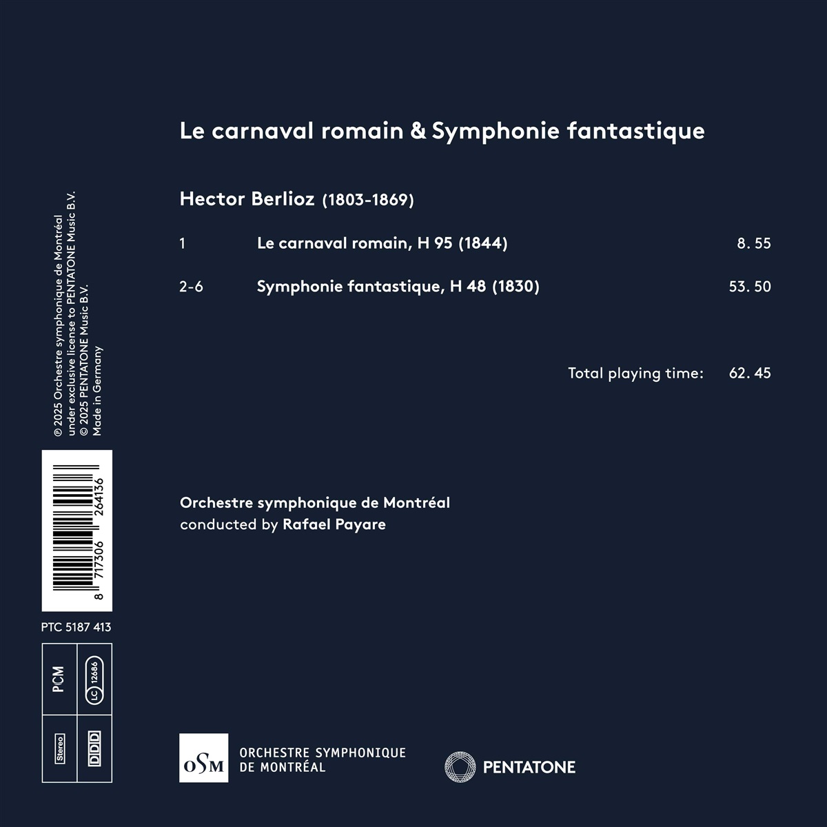 Das Orchestre symphonique de Montréal und sein Musikdirektor Rafael Payare widmen sich Hector Berlioz' „Sinfonie fantastique“ und „Le carnaval romain“ – zwei Werken, die das Gespür des Komponisten für Dramatik, Abwechslungsreichtum und psychologische Intensität offenbaren. In der „Sinfonie fantastique“ zeichnet Berlioz die wahnsinnige Innenwelt eines Künstlers nach, der von Leidenschaft, Halluzinationen und Obsessionen überwältigt wird. Von träumerischen Fantasien bis hin zu einem teuflischen Hexensabbat ist die Sinfonie ein Meilenstein der musikalischen Erzählkunst. Zusammen mit dem mitreißenden „Le carnaval romain“ fängt dieses Album Berlioz in seiner fantasievollsten und kompromisslosesten Form ein. Als besondere Note kommen in der Aufführung der „Sinfonie fantastique“ die beiden neu erworbenen Glocken G und C des OSM zum Einsatz, die die Klangpalette des Orchesters erweitern und Berlioz' ursprünglicher Vision eine beeindruckende Brillanz verleihen. Nach ihren gefeierten Aufnahmen von Gustav Mahlers „Fünfter Sinfonie“ (2023), „Rückert-Lieder“ und Richard Strauss' „Ein Heldenleben“ (2024) sowie Arnold Schönbergs „Pelleas und Melisande“ und „Verklärte Nacht“ (2024) setzen Payare und das Orchester ihre fesselnde Erkundung des romantischen Repertoires mit diesem lebendigen Berlioz-Programm fort.