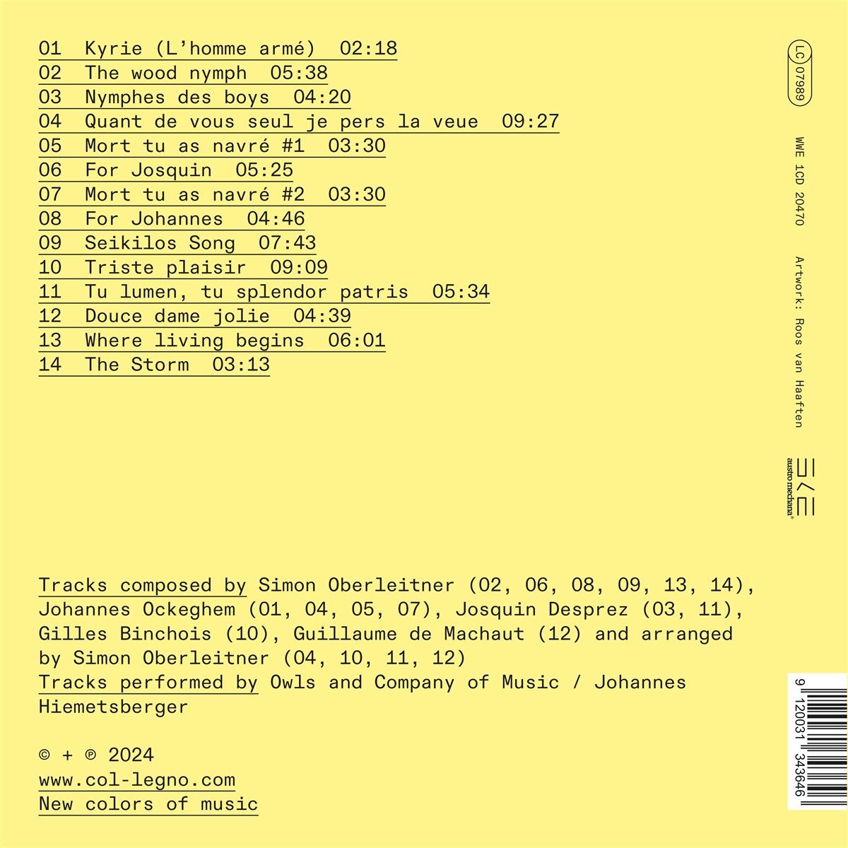 Kompositorische Lichtgestalten wie Johannes Ockeghem, Josquin Desprez und Gilles Binchois werfen lange Schatten bis in die Gegenwart. Im Aufeinandertreffen ihrer richtungsweisenden Vokalwerke mit improvisierter und komponierter Musik unserer Zeit öffnen sich neue Perspektiven, Beziehungen und Grenzerfahrungen, die der zeitgenössische Komponist Simon Oberleitner in einem Jahrhunderte überschreitenden Dialog mit den Großmeistern der Renaissance zusammenführt. In Erinnerungen, Verwandlungen und Antwortbeziehungen treten das Jazztrio Owls und das Vokalensemble Company of Music in Resonanz mit Alter und Neuer Musik.