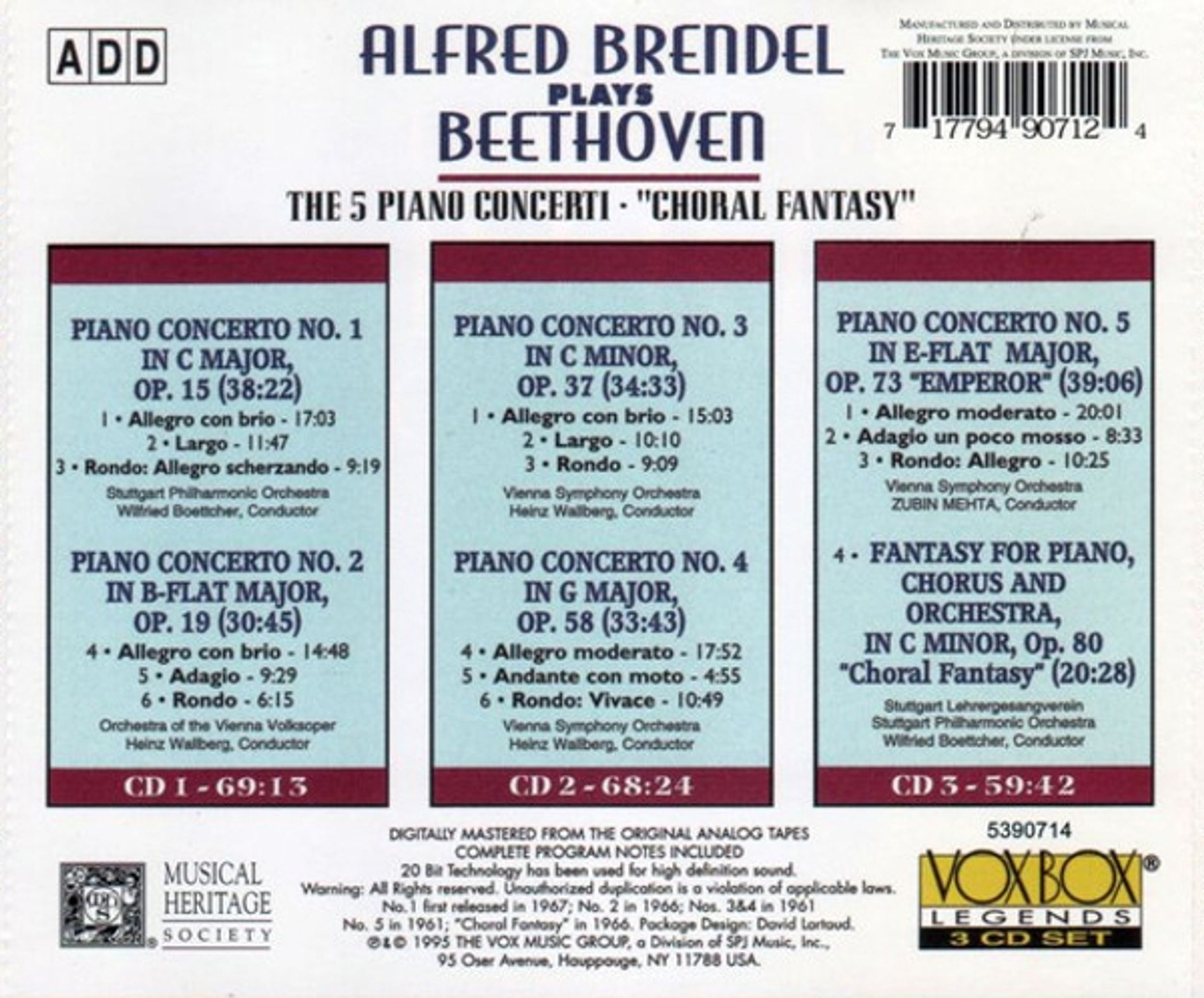 Boettcher, Wilfried / Brendel, Alfred / Mehta, Zubin / Stuttgart Lehrergesangverein / Stuttgart Philharmonic Orchestra / Orchester der Wiener Volksoper / Wallberg, Heinz / Wiener Symphoniker