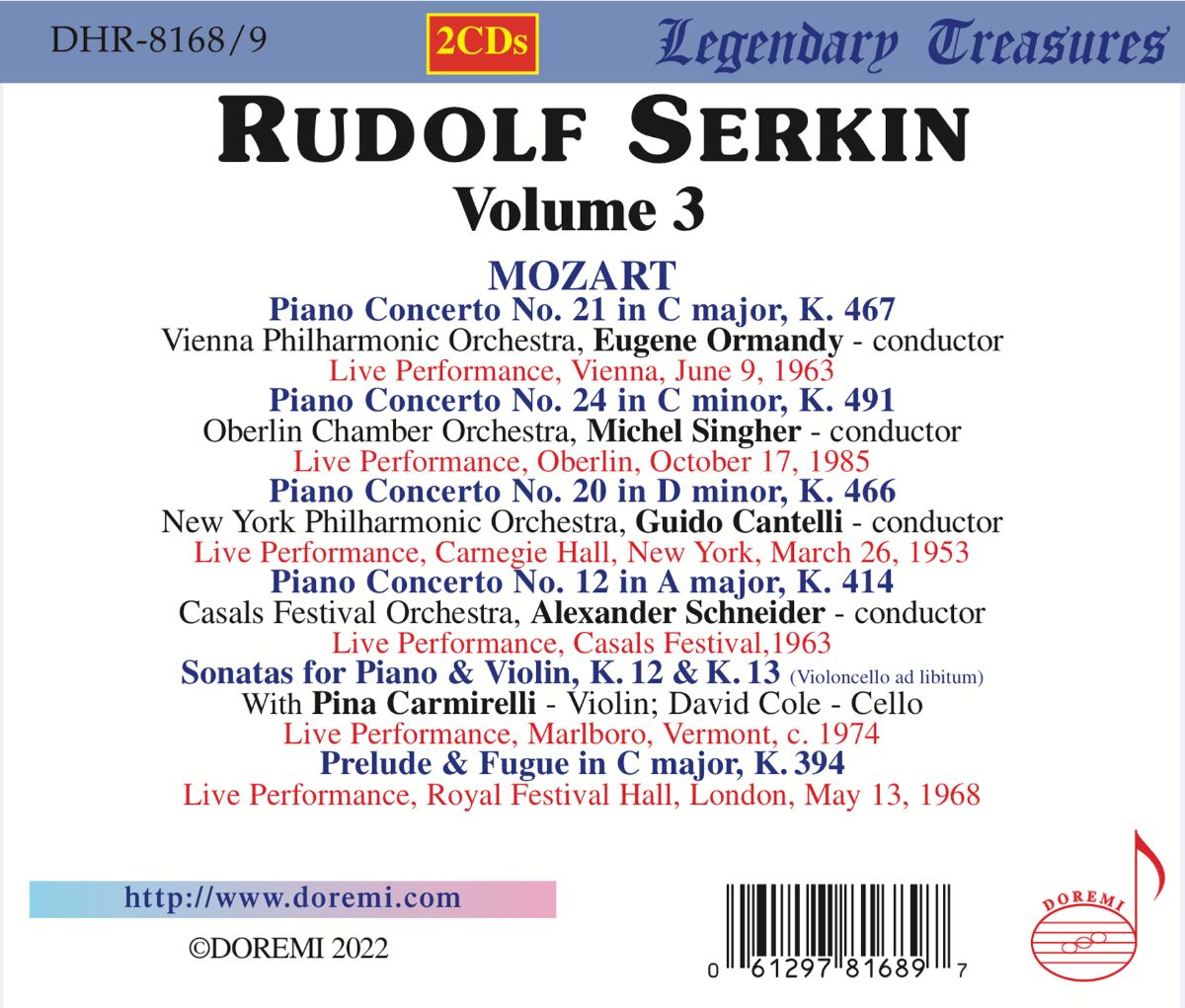 Serkin, Rudolf / Ormandy, Eugene / Cantelli, Guido / Singher, Michel