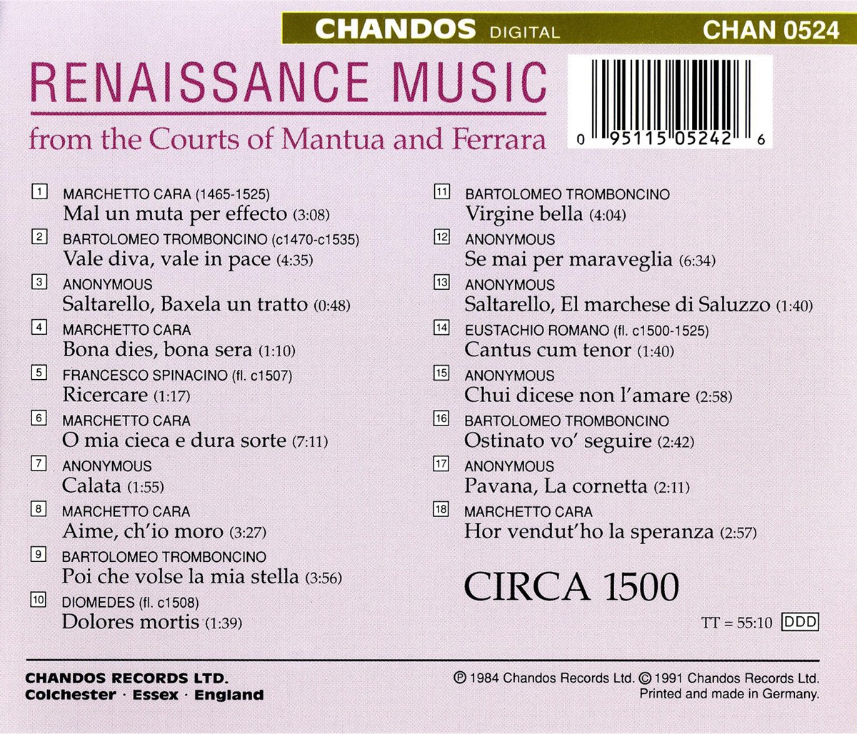 Renaissance Music From The Courts Of Mantua And Ferrara